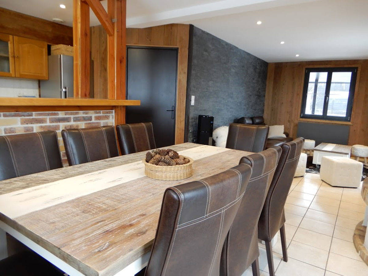 Dans ce grand chalet vous bénéficierez d’un ensoleillement du matin au soir grâce à sa situation plein sud. Vous disposez de 180 m² sur 2 niveaux accessibles de plain pied (12/14 personnes). Parking privé de 4 voitures, facile d’accès pour décharger les bagages. Profitez de cette rénovation récente dans le style montagnard pour vous ressourcer dans les salons confortables avec cheminées , TV et accès wifi. Cuisine ouverte sur le salon, salle à manger disposant de deux lave-vaisselles, d’un grand frigo, four, four micro-ondes, cafetières, appareils à raclette, à fondue, robot Magimix, service en porcelaine. 4 grandes chambres avec fenêtres, 2 salles de bain, 2 WC indépendants, coin buanderie avec machine à laver 10 kg et sèche-linge. Le coin montagne au niveau de l’entrée dispose d’un séchoir à ski et chaussures, radiateur pour les gants et accessoires, vous pourrez chausser assis près de la cheminée et dans le confort grâce aux places assises proche de votre matériel. La TV dans la même pièce permettra aux enfants de patienter pendant que tout le monde se prépare. Vous avez à votre disposition des navettes gratuites l’hiver situées à 80 m. Elles passent toutes les 20 minutes en moyenne et permettent d’accéder à plusieurs points de la station.
