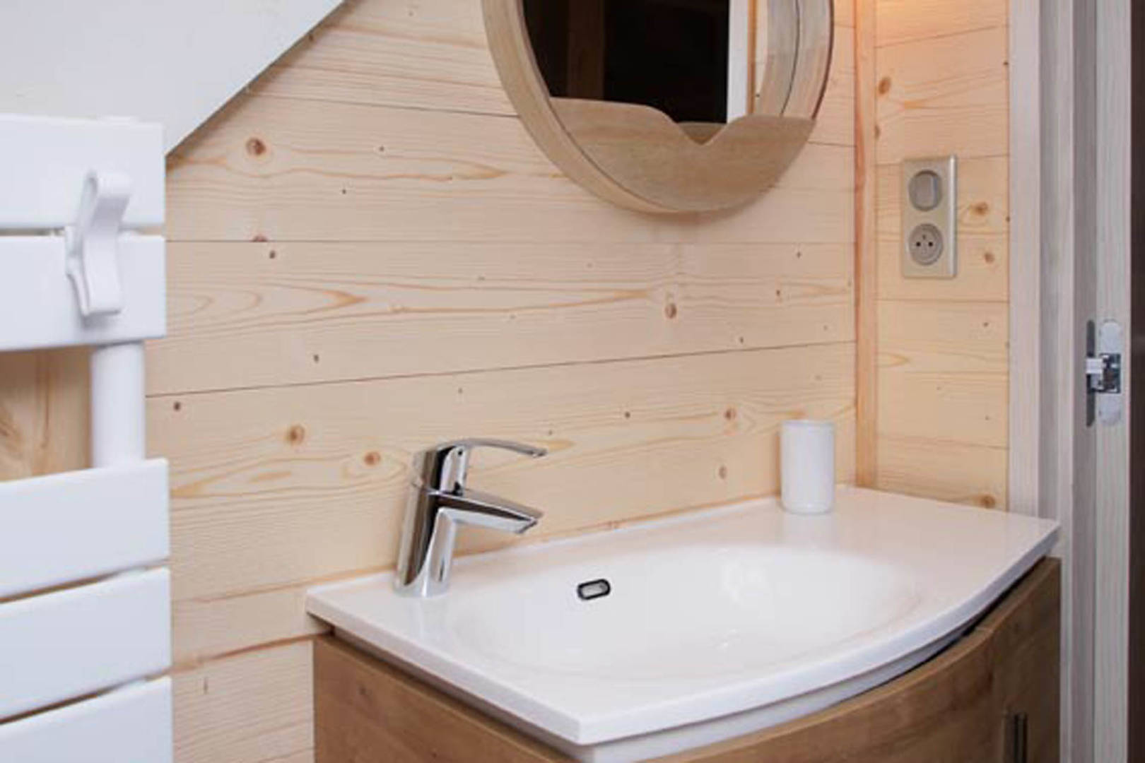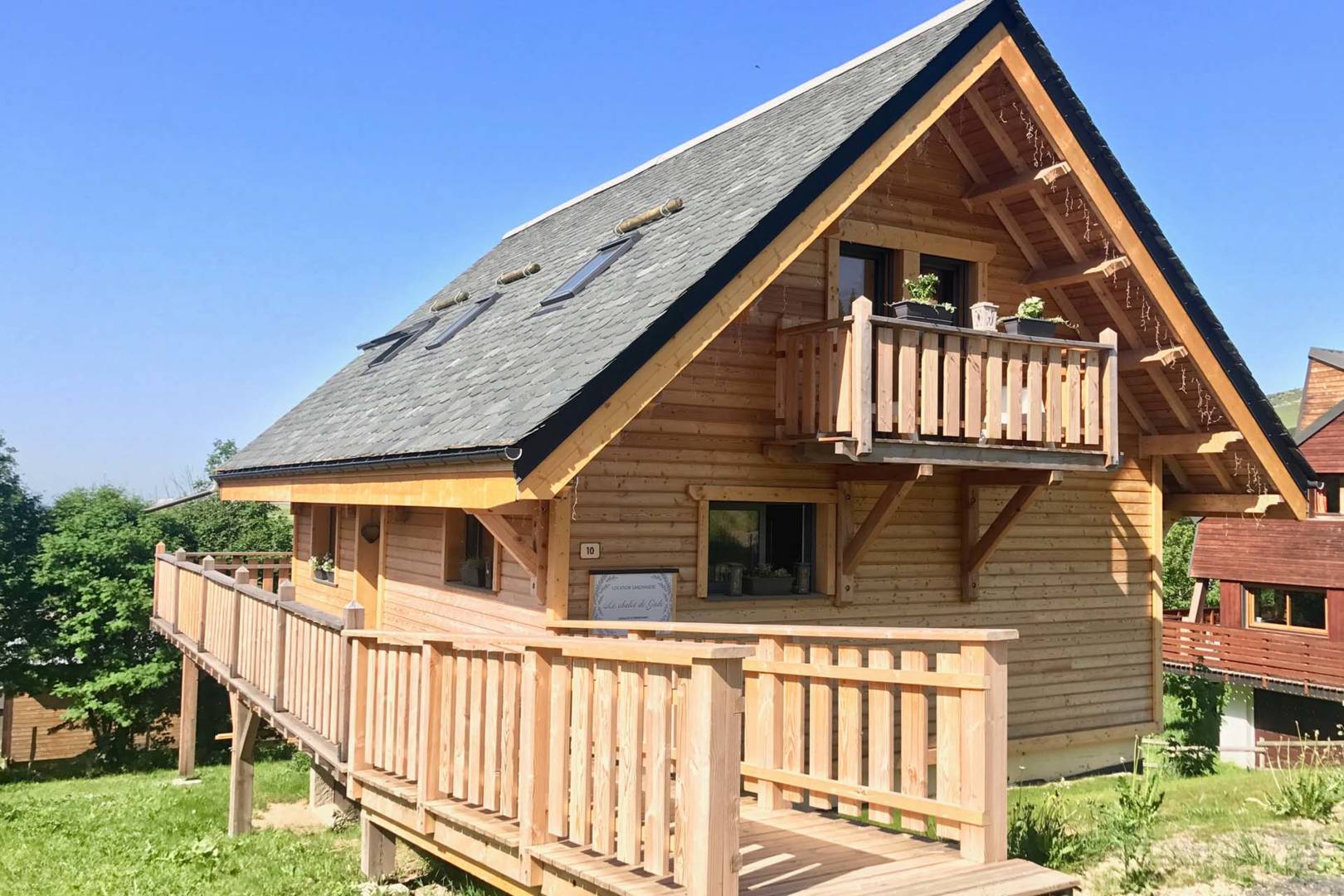 Construit en mélèze noble et coiffé d’un toit en ardoise, chaque détail reflète le soin apporté à l’harmonie des matériaux et à la chaleur de l’atmosphère.