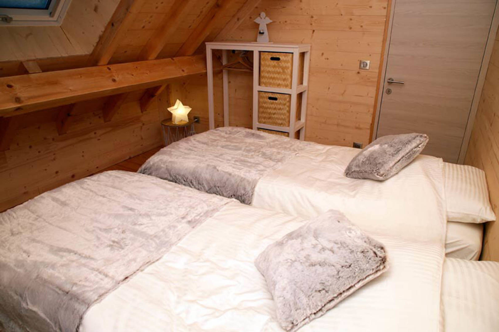 Chaque coin du chalet a été pensé pour offrir confort, intimité et luxe discret, avec des finitions soignées et des matériaux nobles qui subliment l’ambiance cocooning.