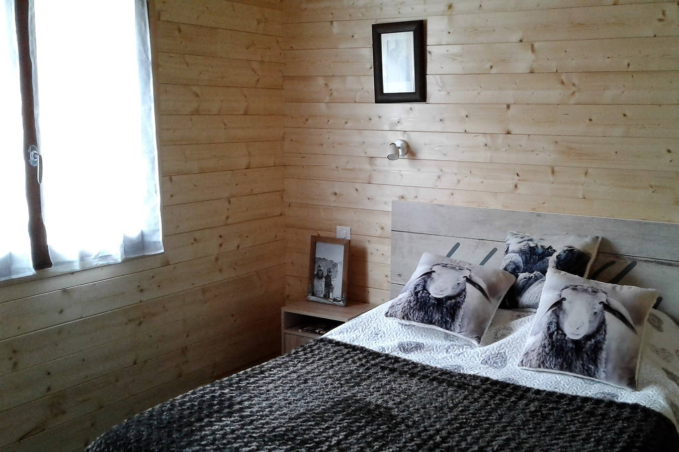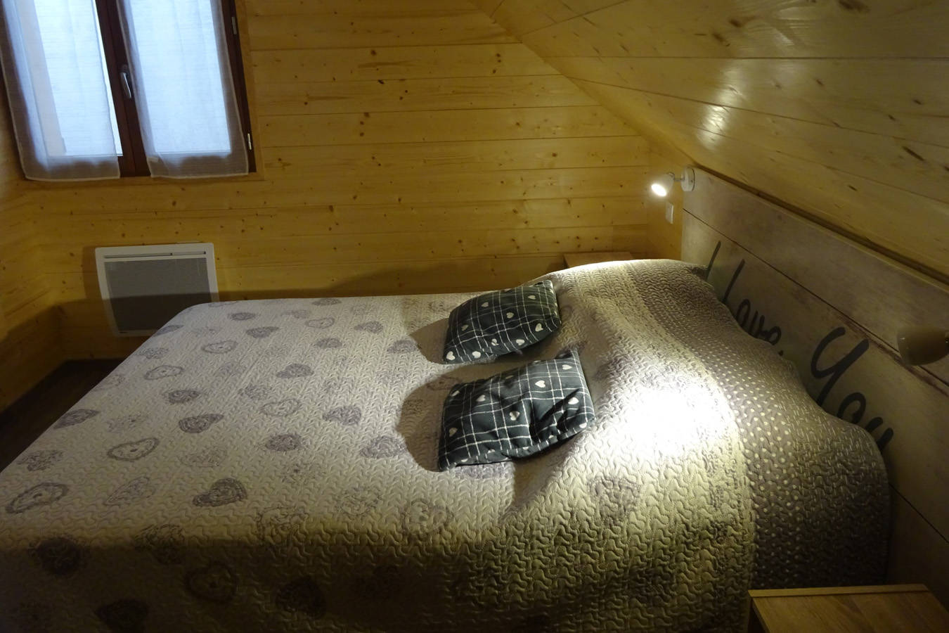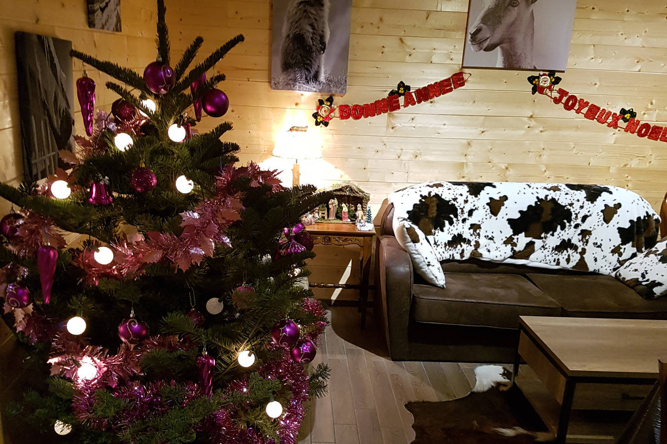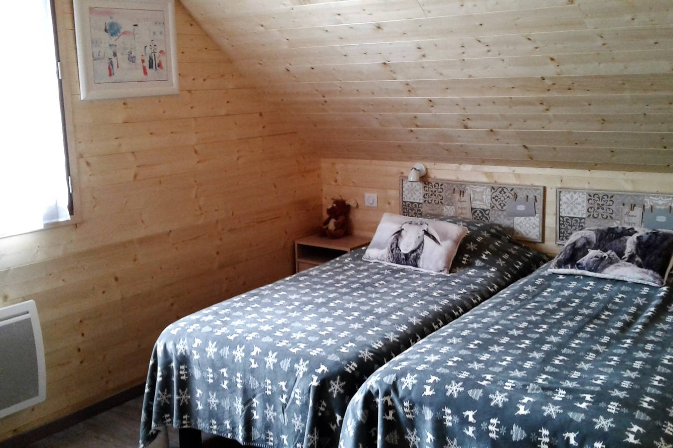 Le chalet comprend une terrasse, un balcon, une pièce de vie avec une cuisine ouverte, quatre chambres, deux salles d’eau avec une douche, deux WC, un garage, deux places de parking et un petit jardin.