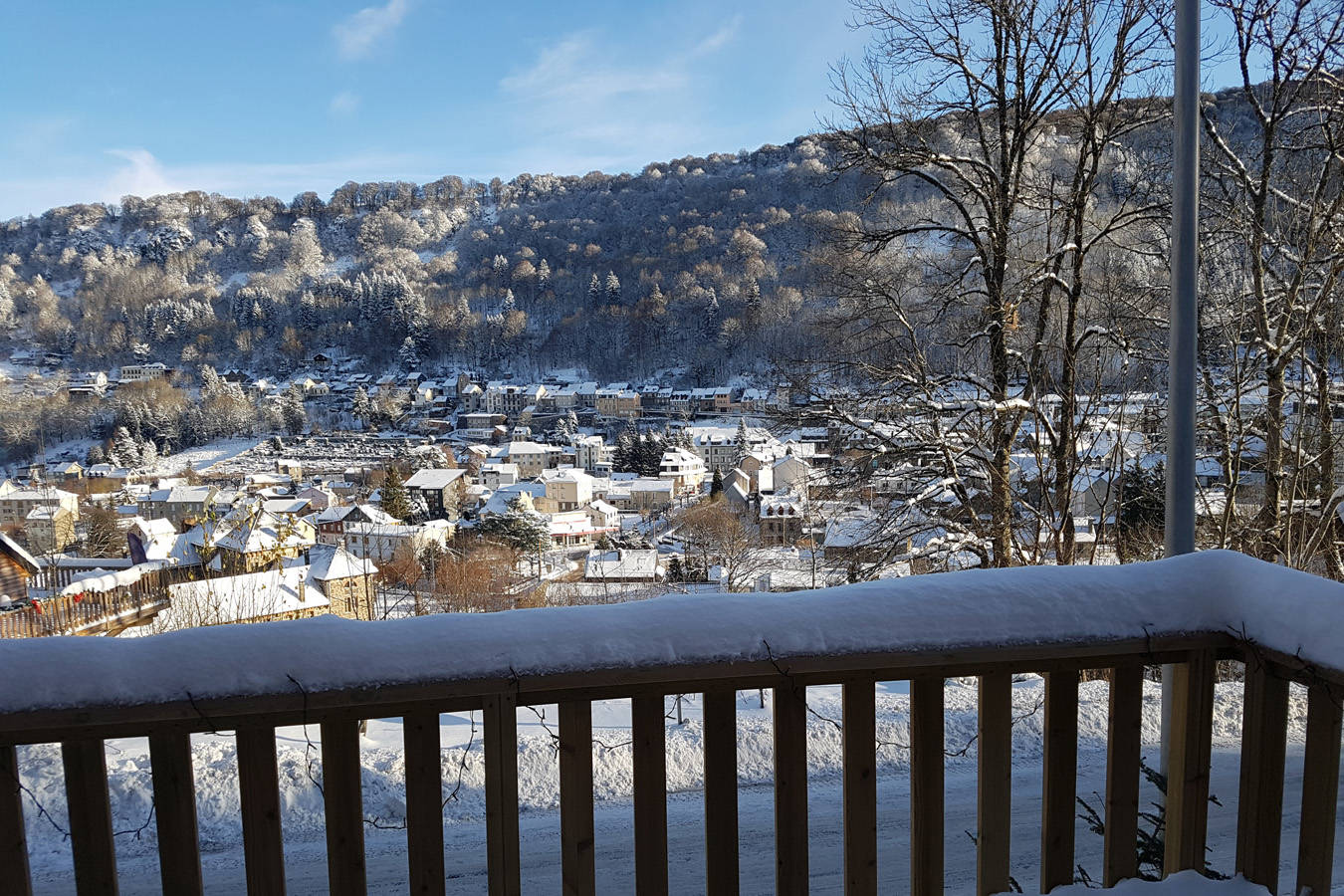 Beau chalet neuf, de 100 m² à proximité du centre-ville. Grand balcon exposé au soleil, vue sur le Mont-Dore et la grande cascade.