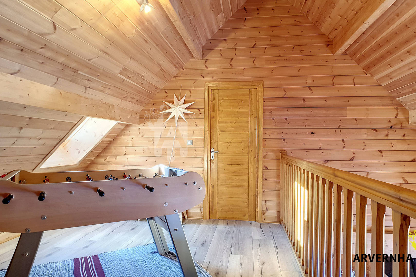 Au dernier étage, vous disposerez de deux chambres dans la même configuration que la précédente, avec deux lits 90 pouvant former un lit double 180 ainsi qu’une deuxième salle d’eau et une mezzanine avec baby-foot.