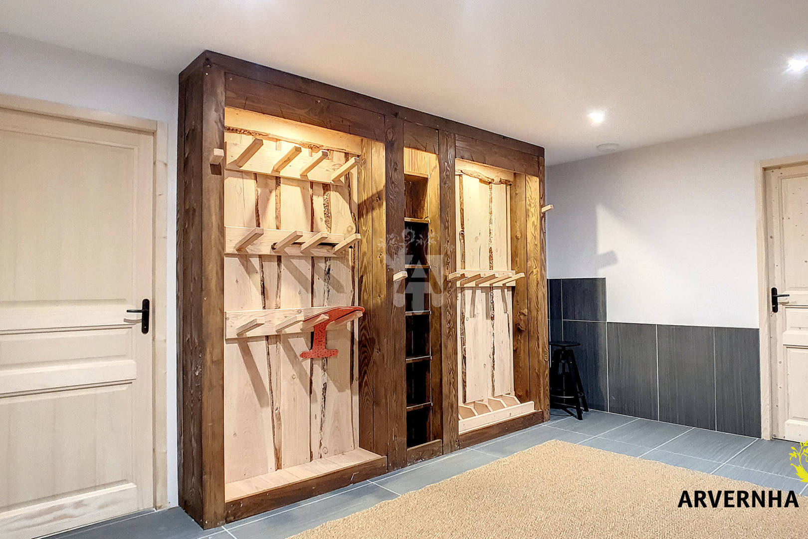 Dans ce récent chalet en madriers, posé à la lisière de la forêt, vous vous sentirez en harmonie avec la nature. Vous entrerez par le rez-de-jardin via un hall d’entrée avec rangement où vous pourrez déposer vos chaussures de randonnée mais également vos raquettes à neige ou luges. Puis, vous accéderez à l’étage principal dans la grande pièce de vie lumineuse avec accès à la terrasse panoramique pour contempler la nature environnante.