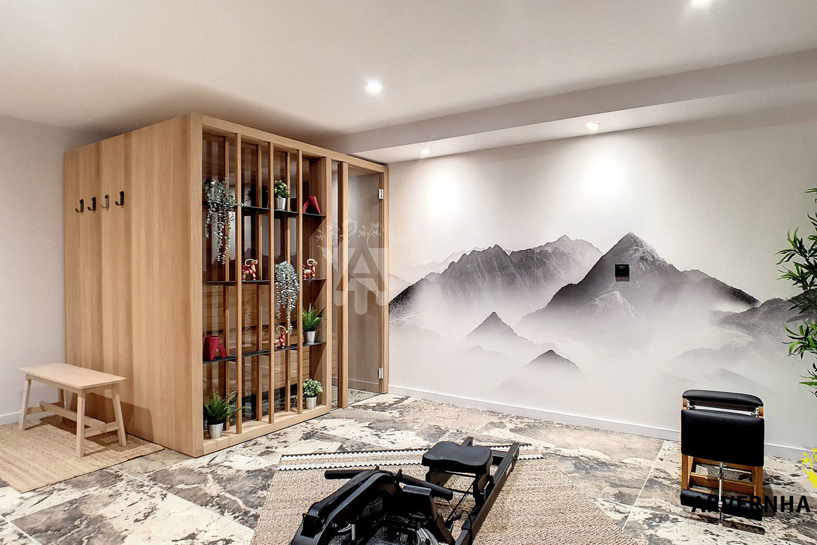Pour terminer en beauté, vous retrouverez un espace détente composé d’un sauna décoré avec goût et d’une salle de yoga avec accessoires de sport.
