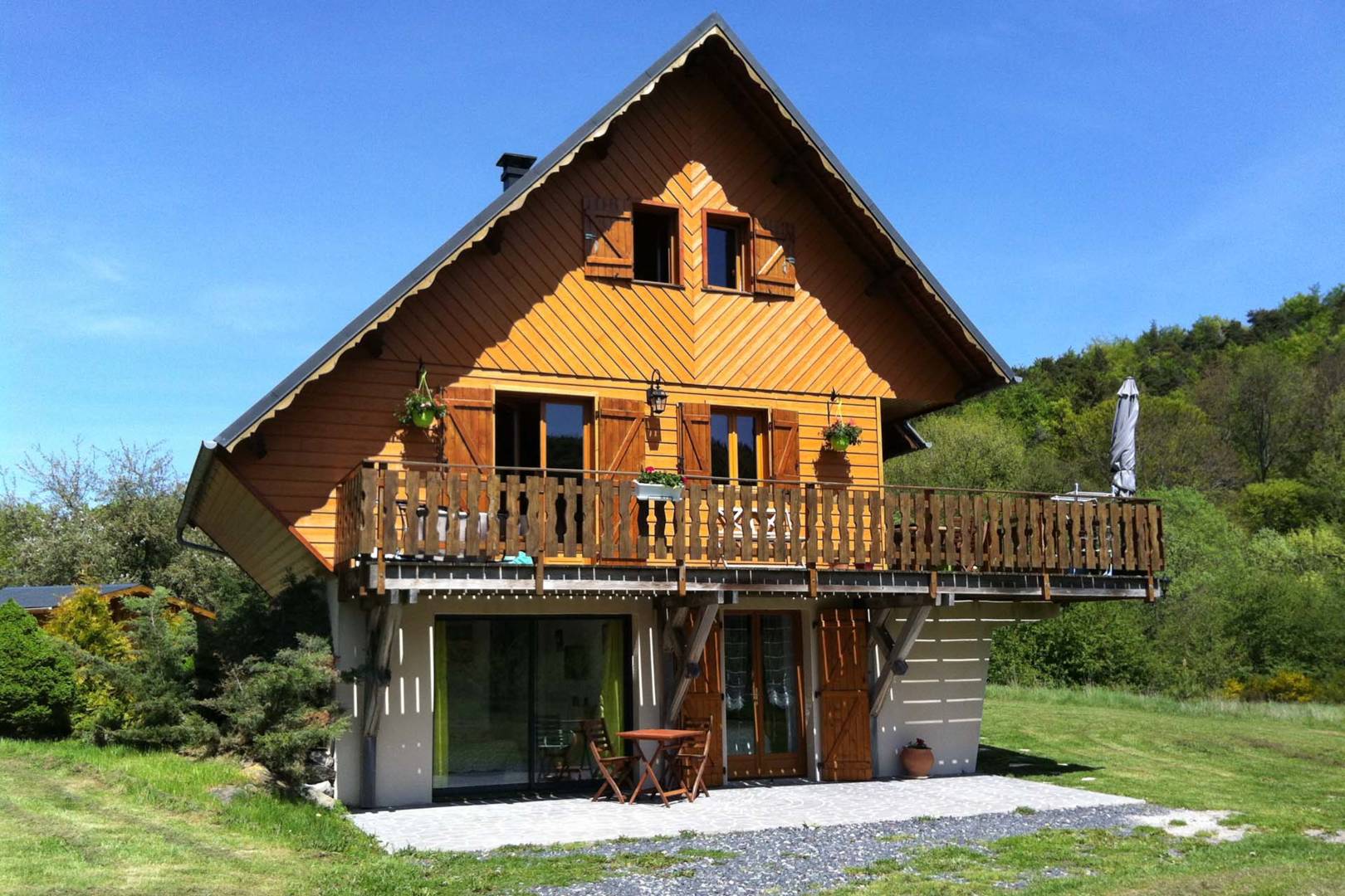 Le gîte est un appartement en rez de chaussée du chalet, avec entrée indépendante. Il dispose d’une grande et lumineuse pièce de vie (salon et salle à manger) avec un canapé dépliable et accès à la terrasse, de deux chambres, d’une cuisine et d’une salle d’eau avec douche à l’italienne.(…)
