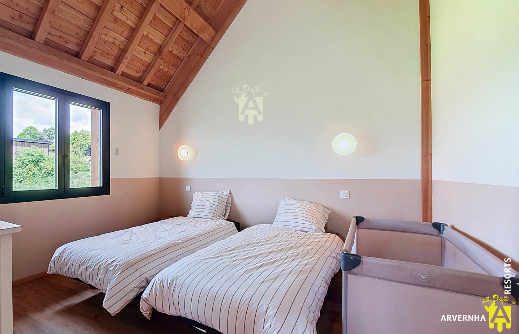 Conçu pour accueillir jusqu’à 8 personnes, le Chalet Joie allie confort, fonctionnalité et ambiance cosy. Au rez-de-chaussée, vous trouverez une belle pièce de vie ouverte avec un salon confortable et un espace repas. Une première chambre avec lit double, une salle d’eau avec douche, ainsi que des WC séparés complètent ce niveau.