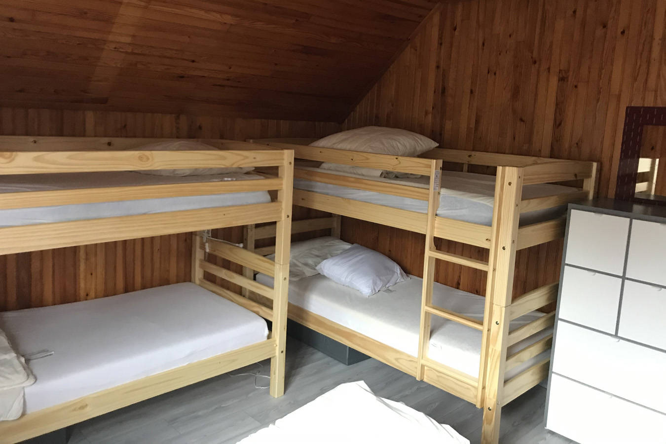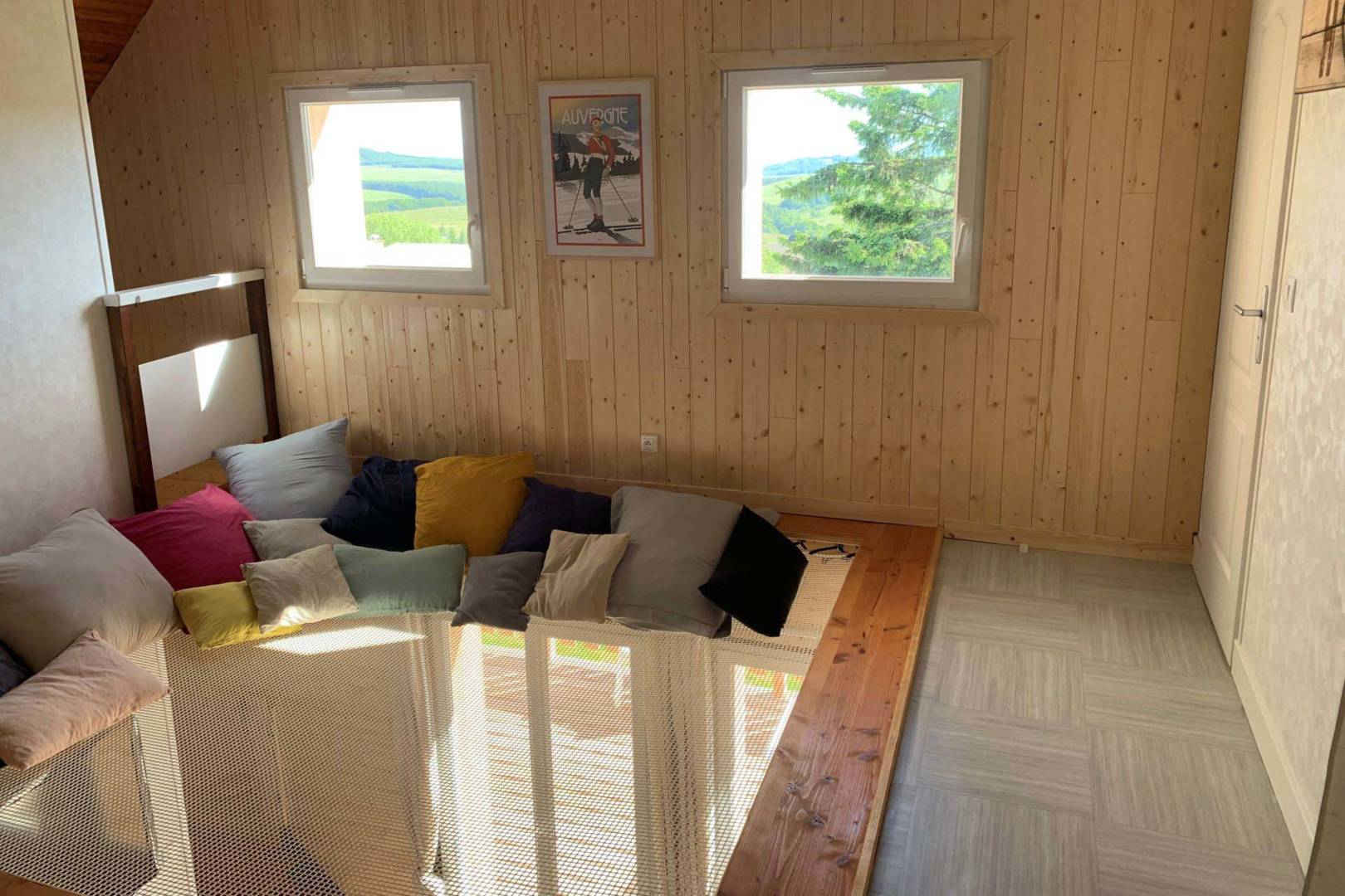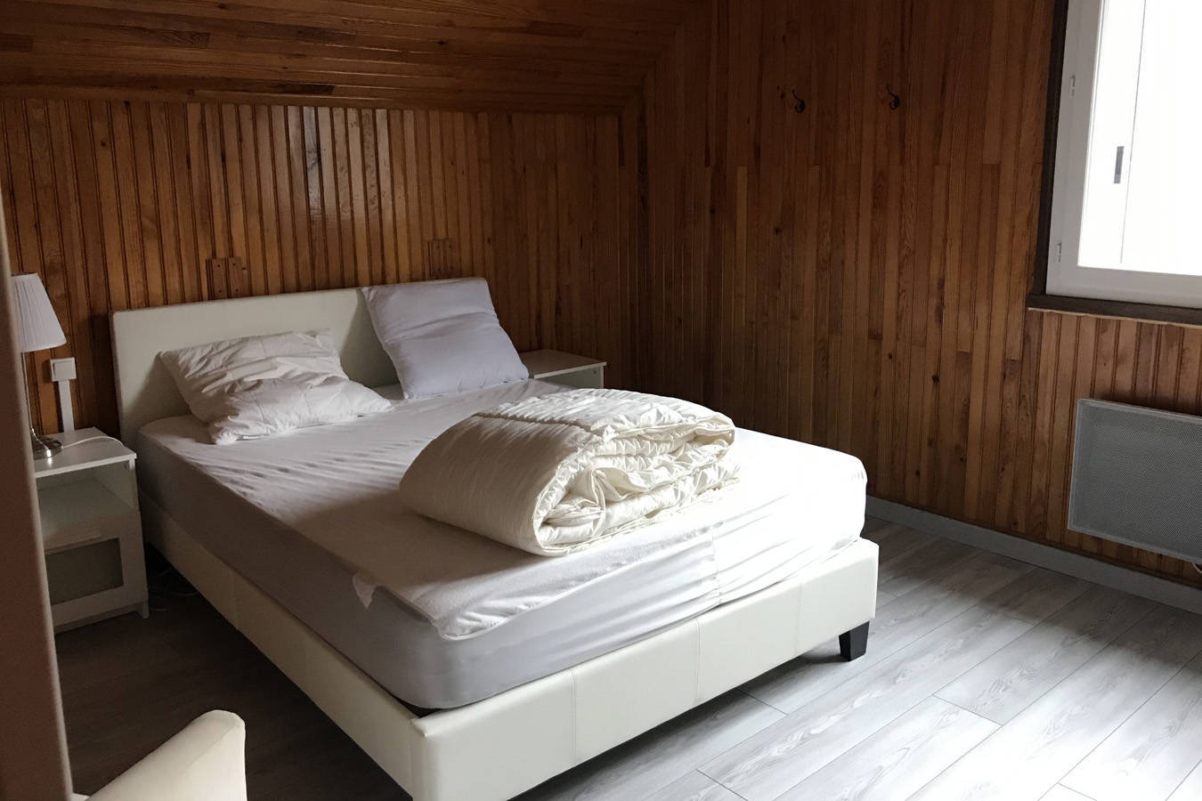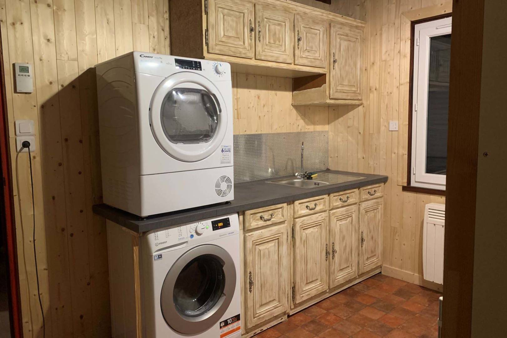 Ce chalet dispose d’un rez-de-chaussée aménagé d’un râtelier à skis à l’entrée avec un couloir équipé de portes manteaux, une cuisine ouverte sur la pièce de vie, une chambre avec lit 140, une salle d’eau, toilette (séparées) et un cellier.