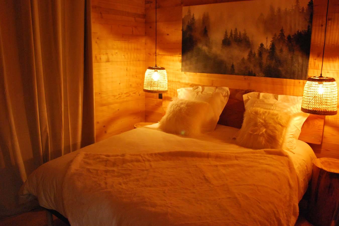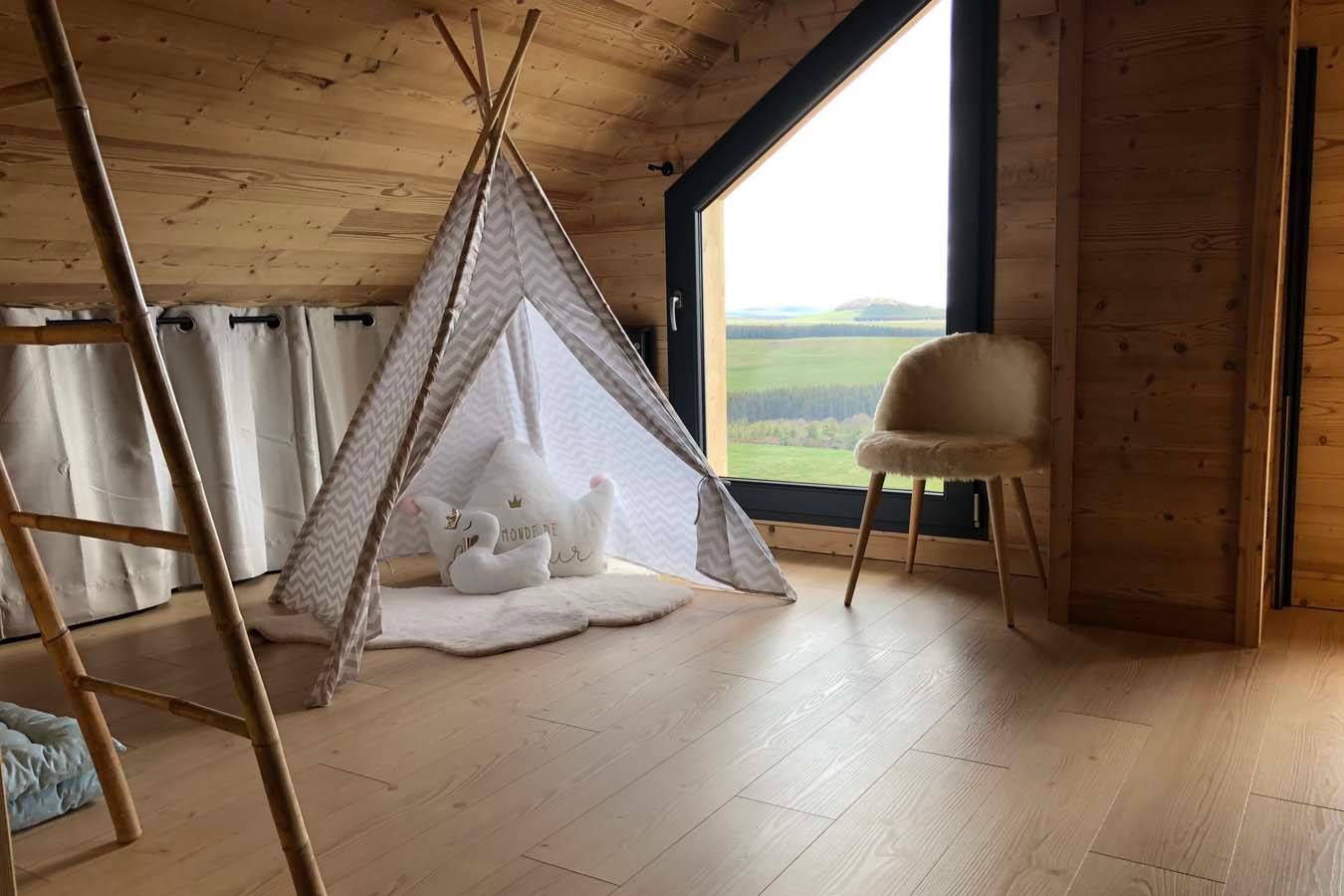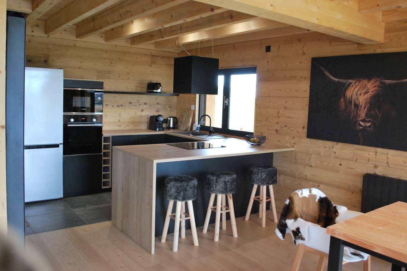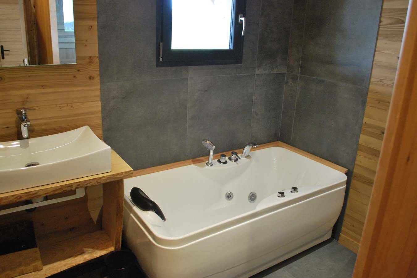 Logement neuf, tout équipé avec beaucoup de charme. Chalet en matériaux durables (bois, acier) à la fois design et nature. Electricité 100% verte et locale. Jacuzzi privatif.