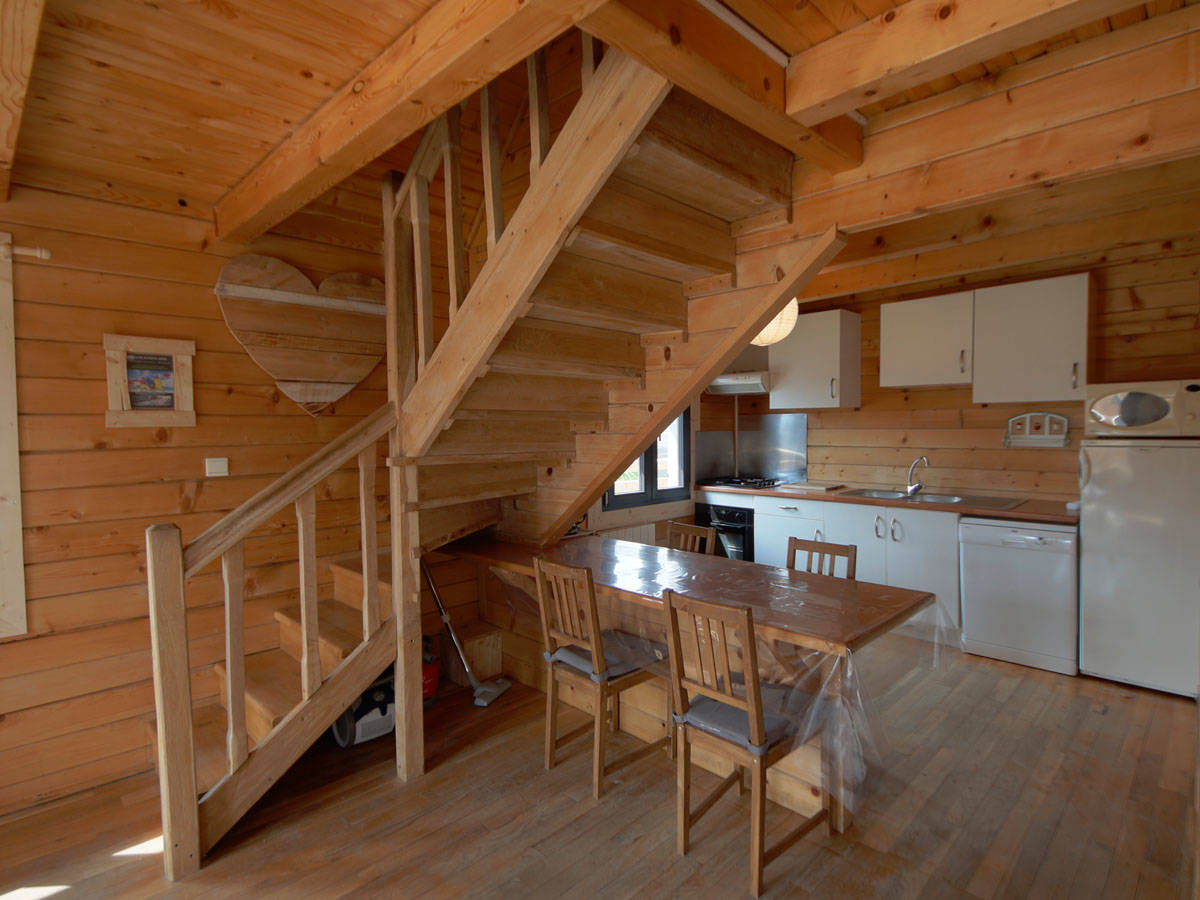 Chalet composé au rez-de-chaussée d’une cuisine – salle à manger équipée ouverte sur un salon. Du salon vous(…)