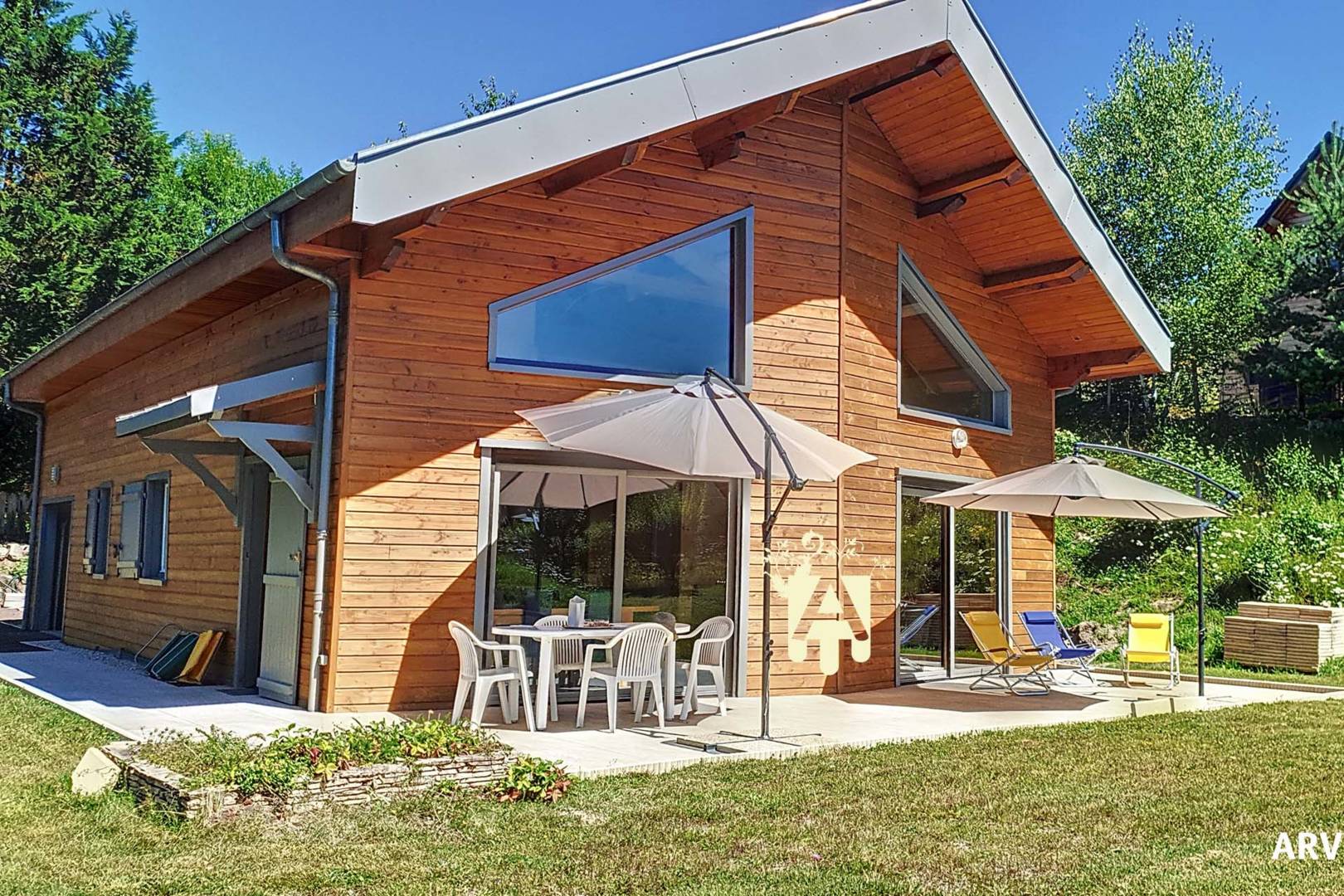 Ce charmant chalet se distingue par sa grande terrasse, idéale pour profiter des paysages environnants et des moments de convivialité en plein air.