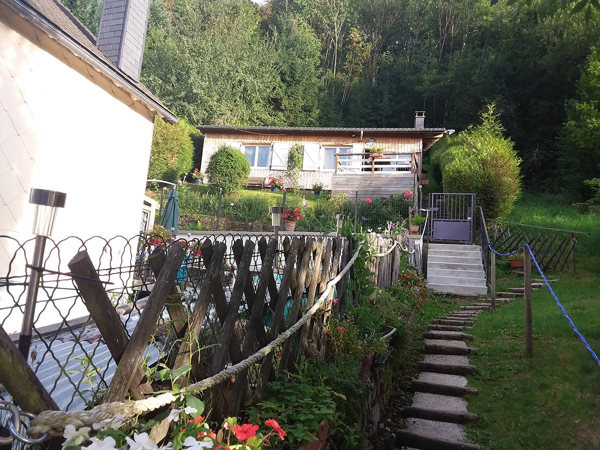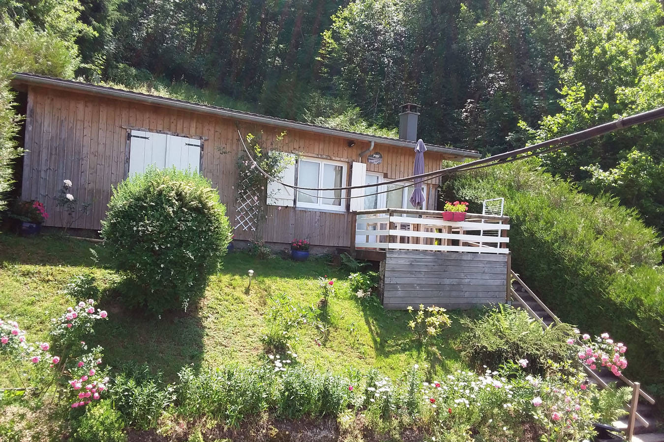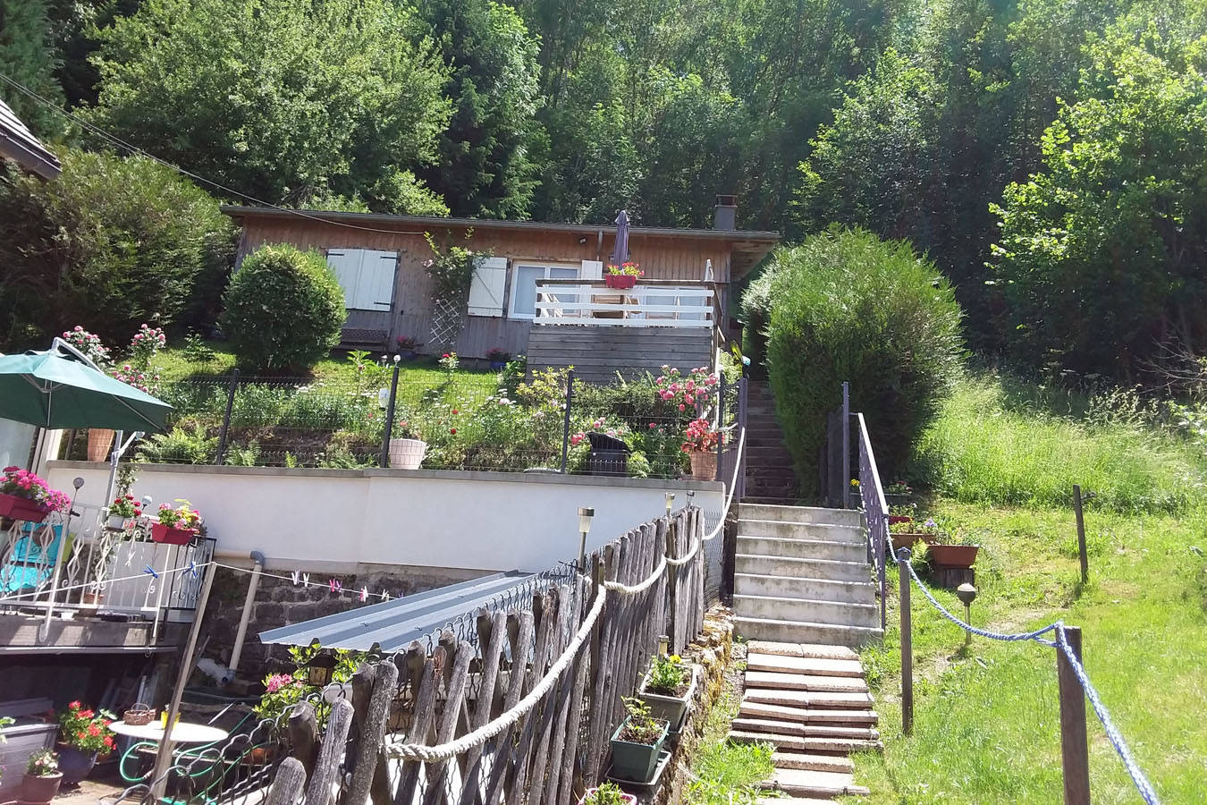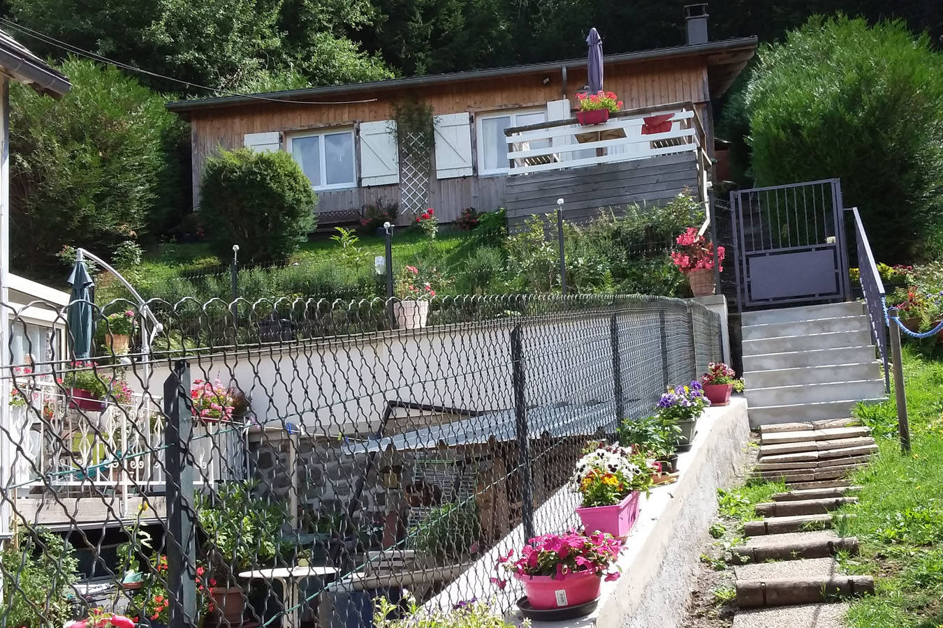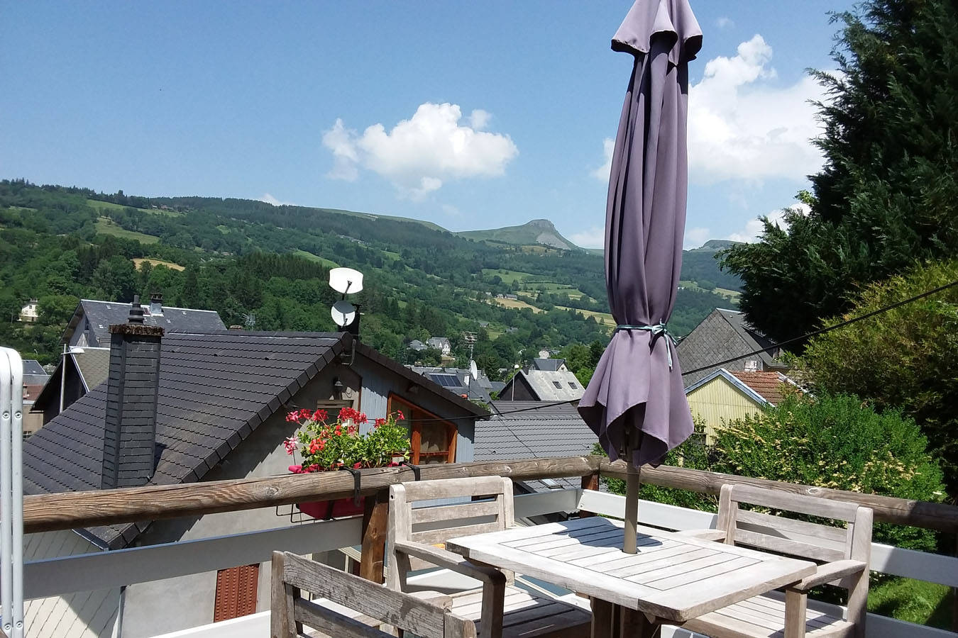 Terrasse avec vue sur montagne.