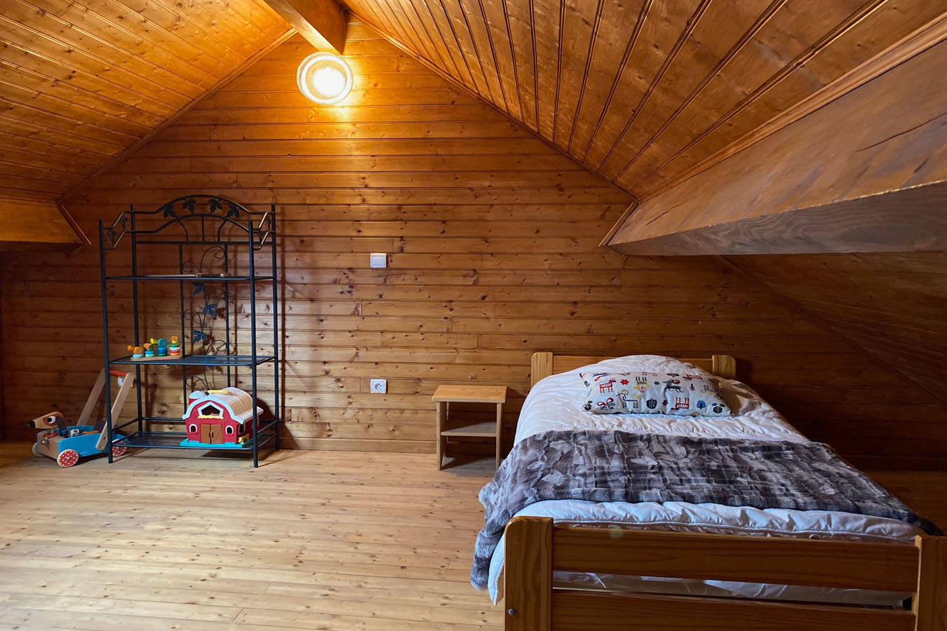 Ici nous vous proposons notre logement au 1er étage d’environ 100 m2. Il s’agit d’un appartement en duplex qui se compose de 2 chambres doubles, d’une mezzanine avec 2 lits simples, d’une cuisine équipée, d’un salon salle à manger avec canapé convertible et d’une salle de bain. Le chalet se(…)