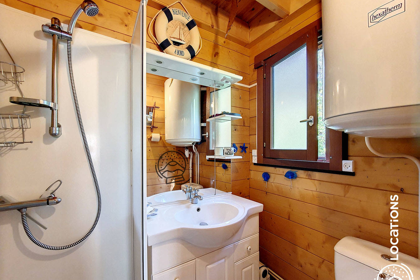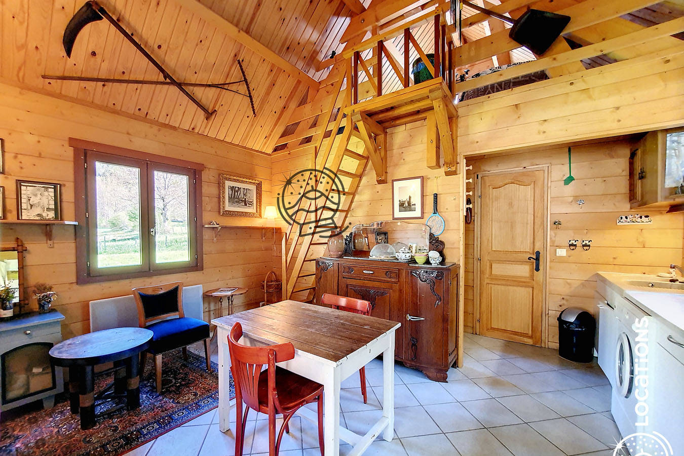 Il se compose d’une salle à manger / cuisine ouverte et lorsque les beaux jours sont là, vous pourrez bien sûr profiter de la magnifique terrasse couverte (attention, pas de TV). Au rez-de-chaussée se trouve la chambre double 140 ainsi que la salle d’eau et les WC.