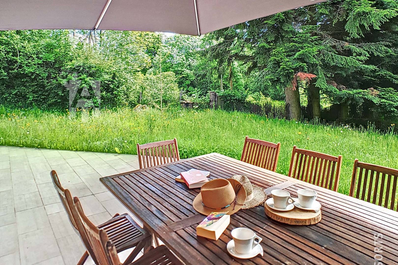 Une terrasse de 100m² offrant un espace de liberté, parfaite pour des moments de détente et des repas en plein air ainsi que d’un vaste terrain extérieur pour vous ressourcer et venir profiter de l’immensité de l’espace naturel qui entoure le chalet.