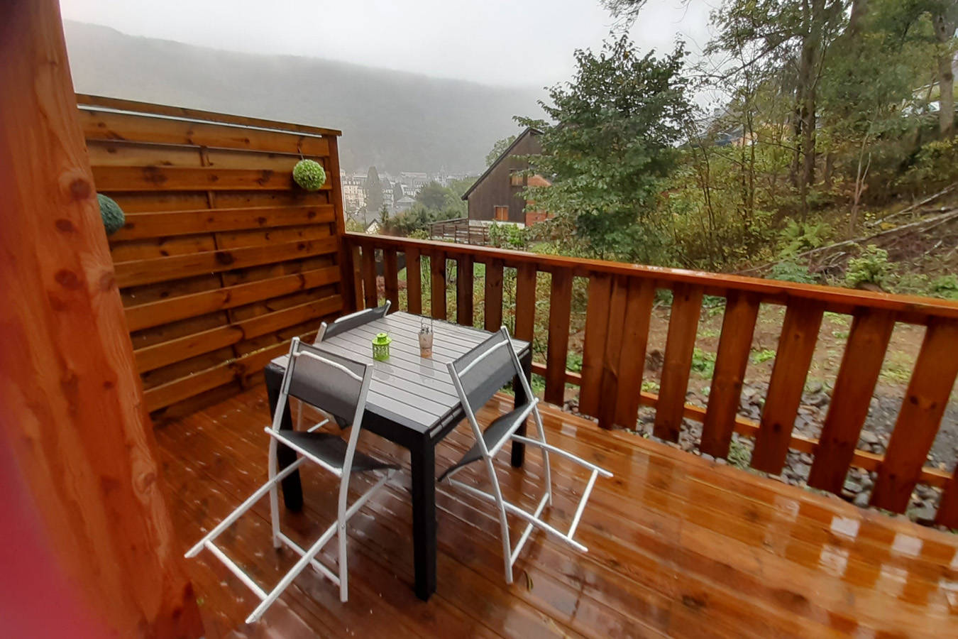 Vue dégagée sur la ville du Mont-Dore et sur la montagne.