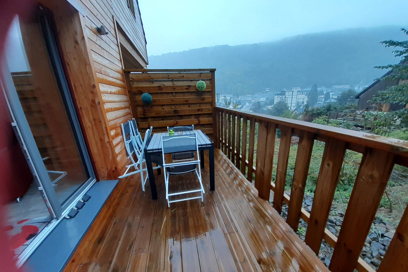 Vue dégagée sur la ville du Mont-Dore et sur la montagne.