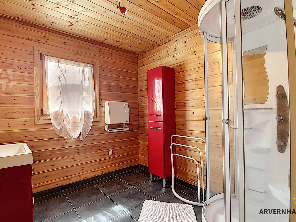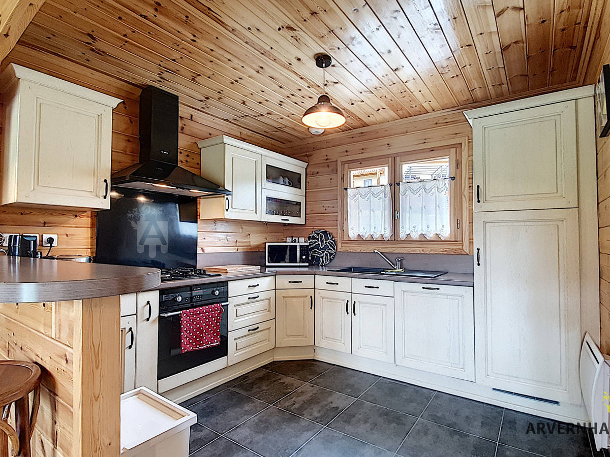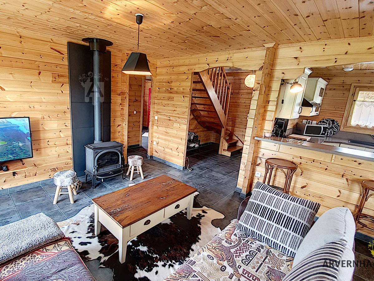 Le chalet vous ouvre ses portes sur une grande pièce à vivre salon/salle à manger. Vous pourrez vous réchauffer au coin du poêle l’hiver et vous prélasser dans le canapé en admirant la vue l’été.