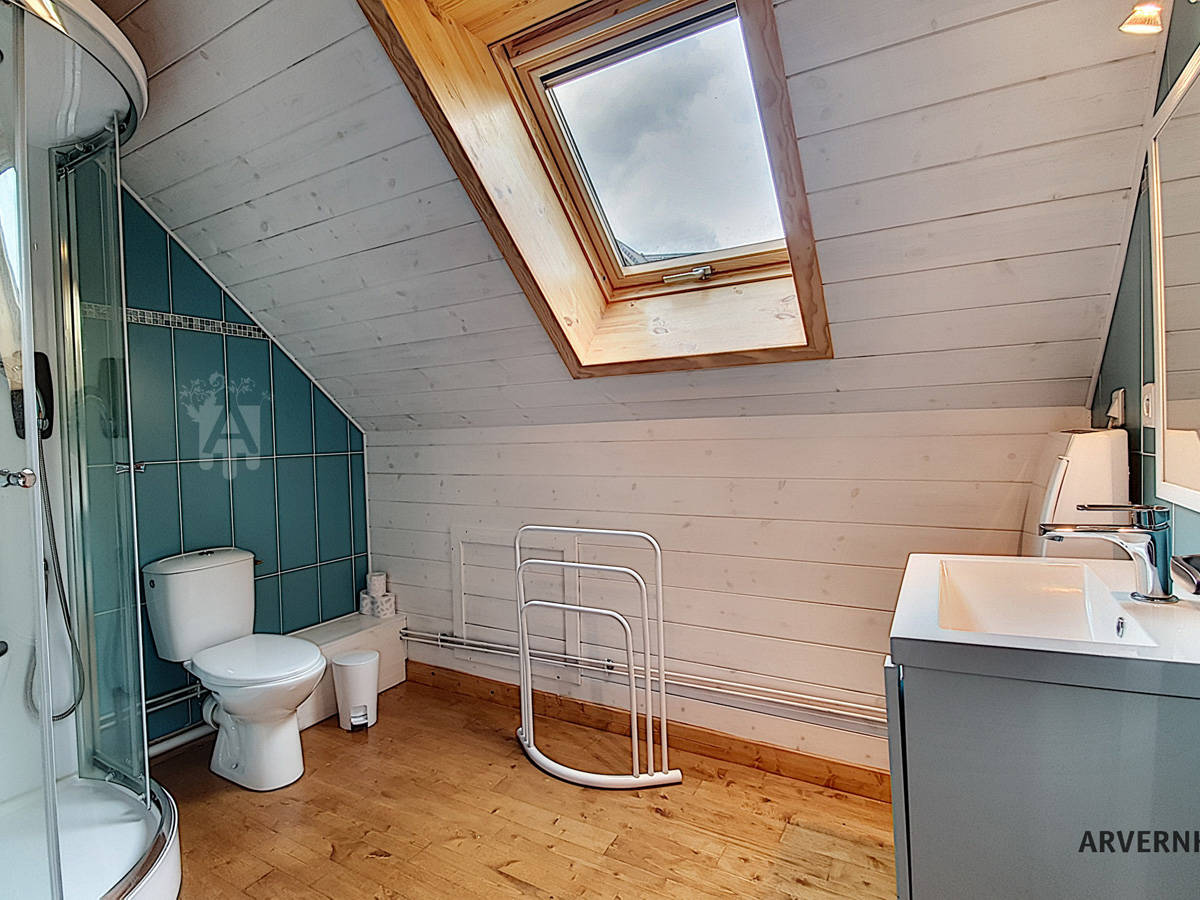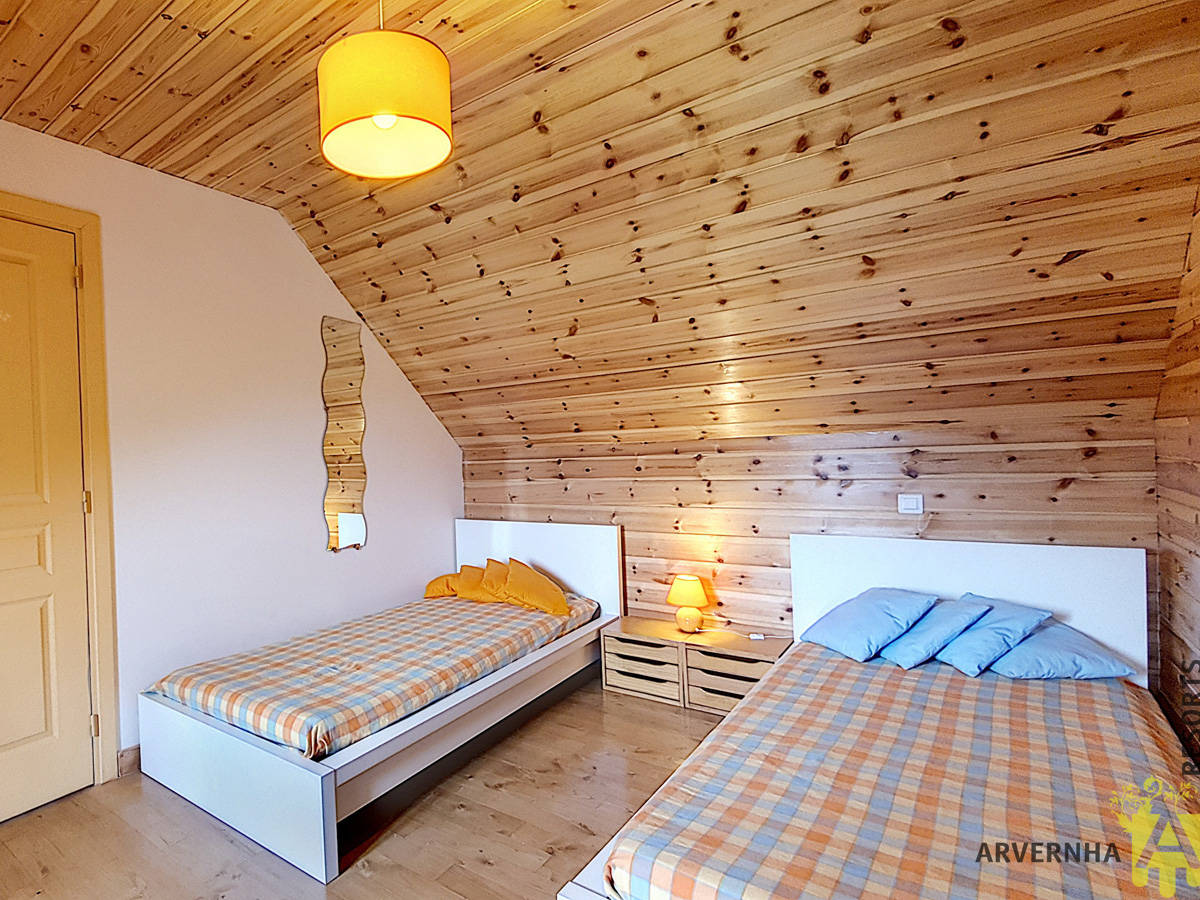 A l’étage vous retrouverez la seconde chambre double (140cm) ainsi qu’une chambre avec deux lits simples (90cm) elles aussi disposant d’une salle d’eau et d’un WC séparé.