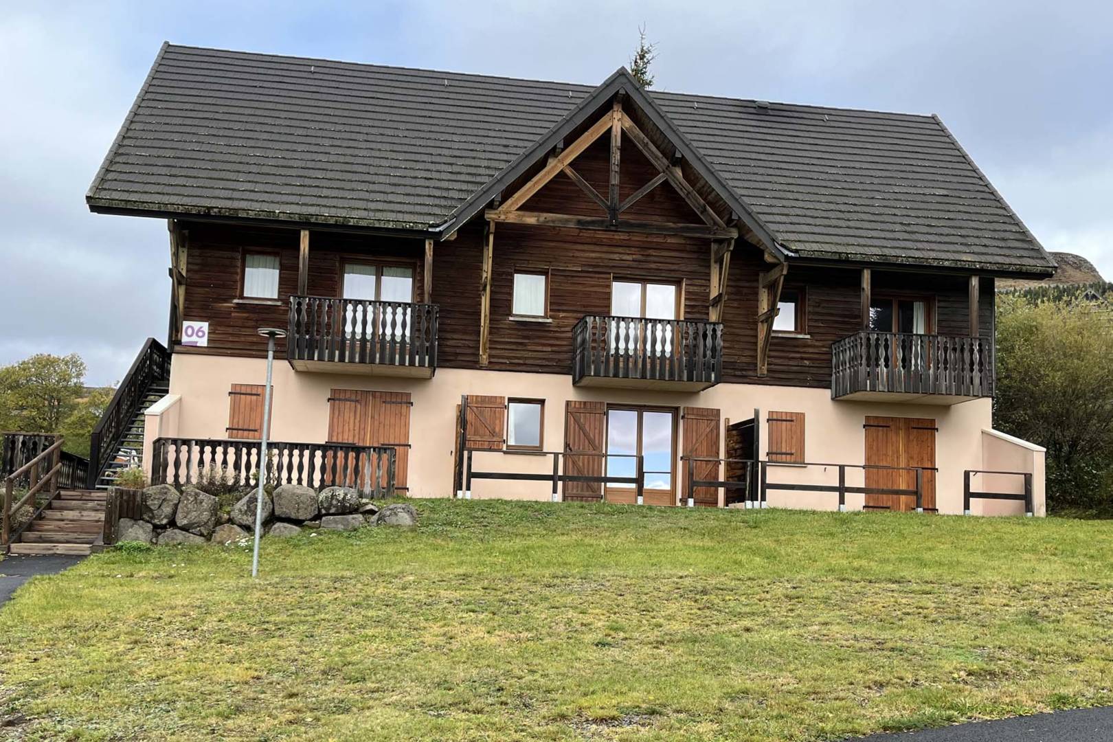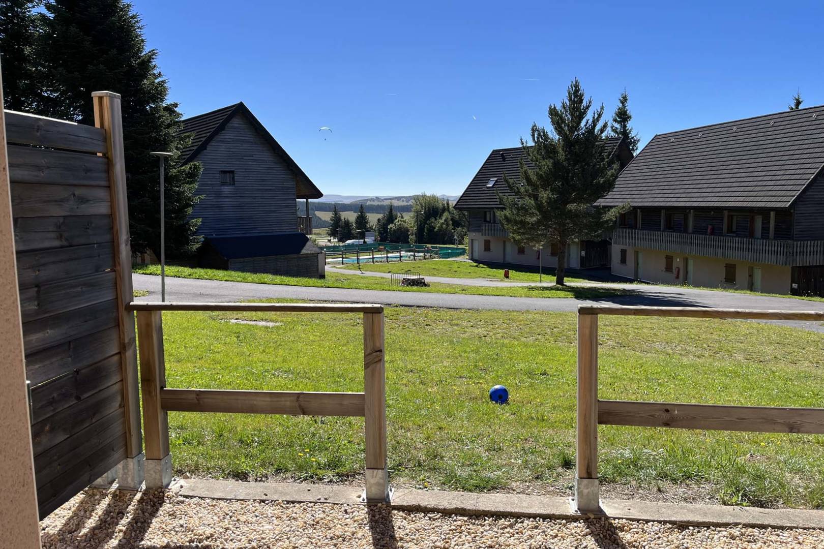 Terrasse avec vue dégagée et casier à skis en extérieur