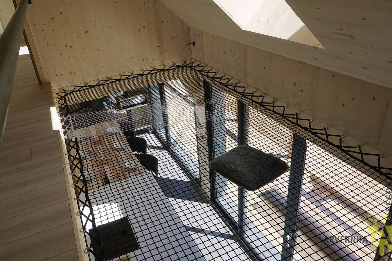 Au rez-de-chaussée : le salon / salle à manger avec poêle à granulés est ouvert sur la cuisine équipée. Du séjour vous pourrez admirer paisiblement les champs et la nature à perte de vue. Une première chambre dispose d’un lit double (160 cm) et possède un accès direct sur la terrasse. Salle d’eau et WC séparé. Au 1er étage : la deuxième chambre est composée de 2 lits simples (90 cm), d’un WC séparé, d’une buanderie avec lave-linge, et d’une mezzanine avec ses filets tendus au-dessus du séjour pour un moment de détente garanti.