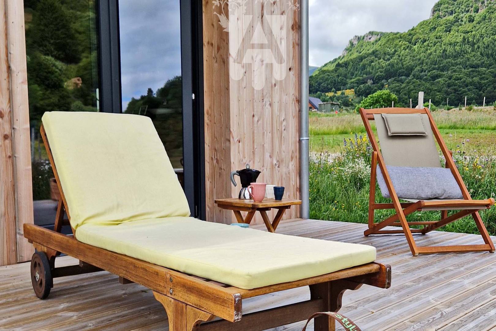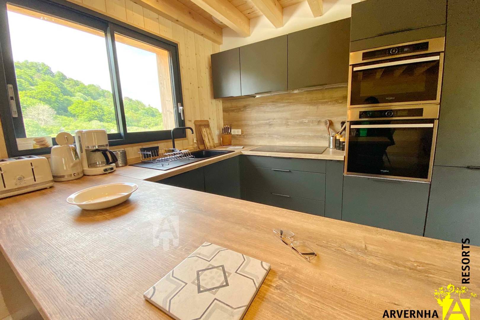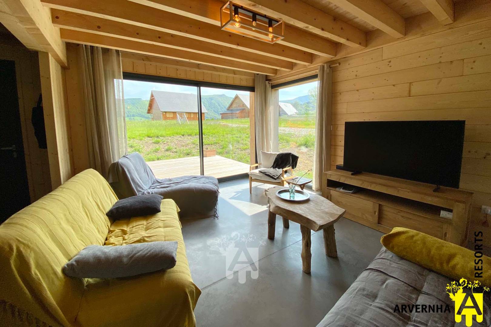Le chalet dispose d’un grand séjour/salle à manger baigné de lumière grâce à ses nombreuses ouvertures.