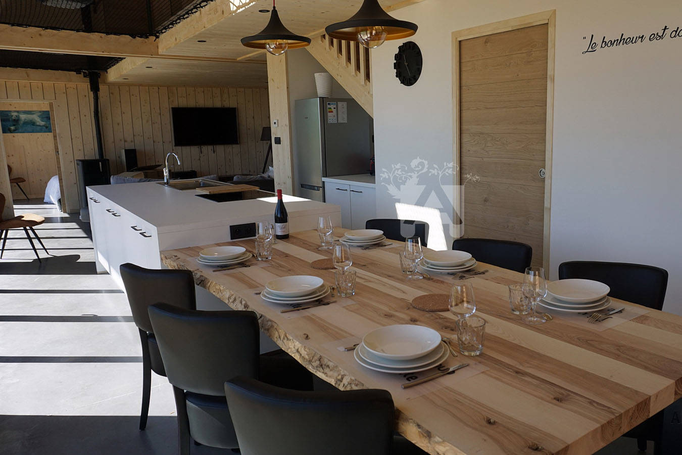 Belle construction en bois pour 6 personnes, à proximité de Besse et Saint-Anastaise, ce chalet neuf de 130 m² sur 2 niveaux avec terrasse dispose de prestations de qualité tel qu’un Sauna et un Jacuzzi.Au rez-de-chaussée, vous serez immédiatement enchantés par le séjour spacieux et lumineux, ouvrant sur la terrasse(…)