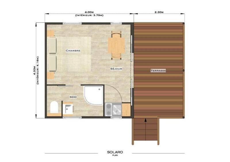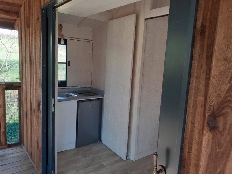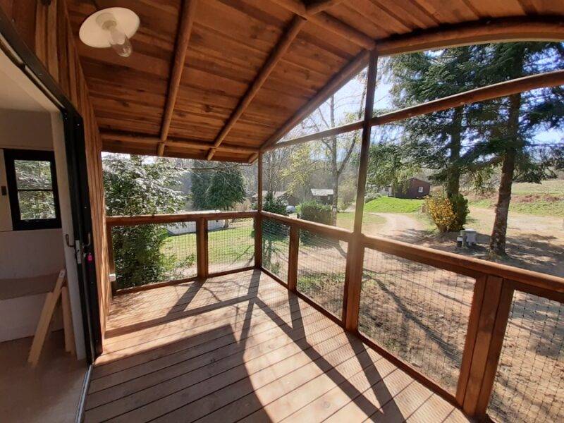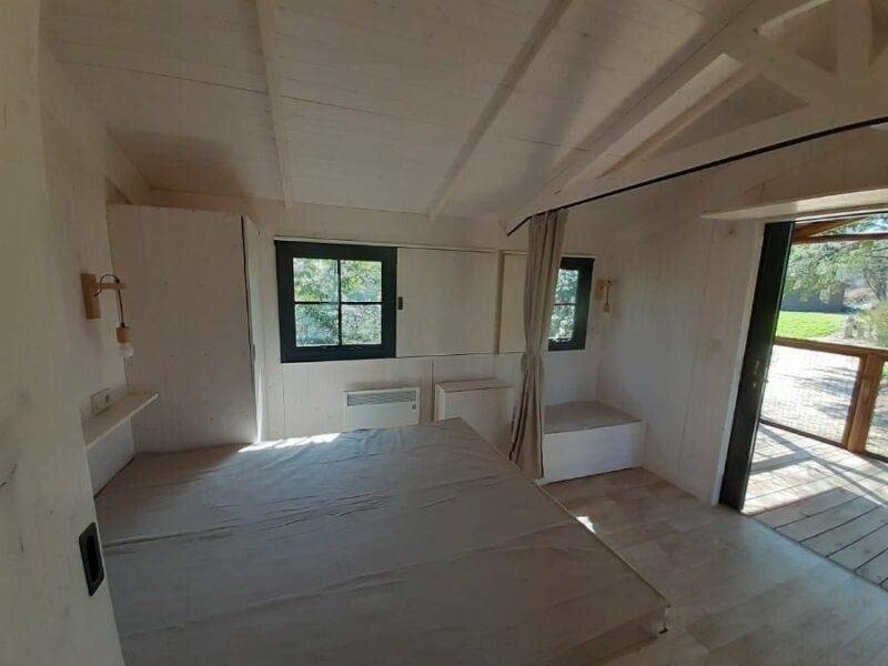 Le chalet sur pilotis 1 chambres mesure 16 m². Entièrement équipé, il possède une terrasse de 10 m². Idéal pour les couples, séjours insolites/romantiques proposés (hors été).