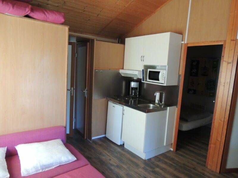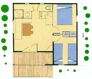 Le chalet 2 chambres mesure 35 m². Entièrement équipé, il possède une terrasse avec salon de jardin.Idéal pour les groupes de 5 à 7 personnes.
