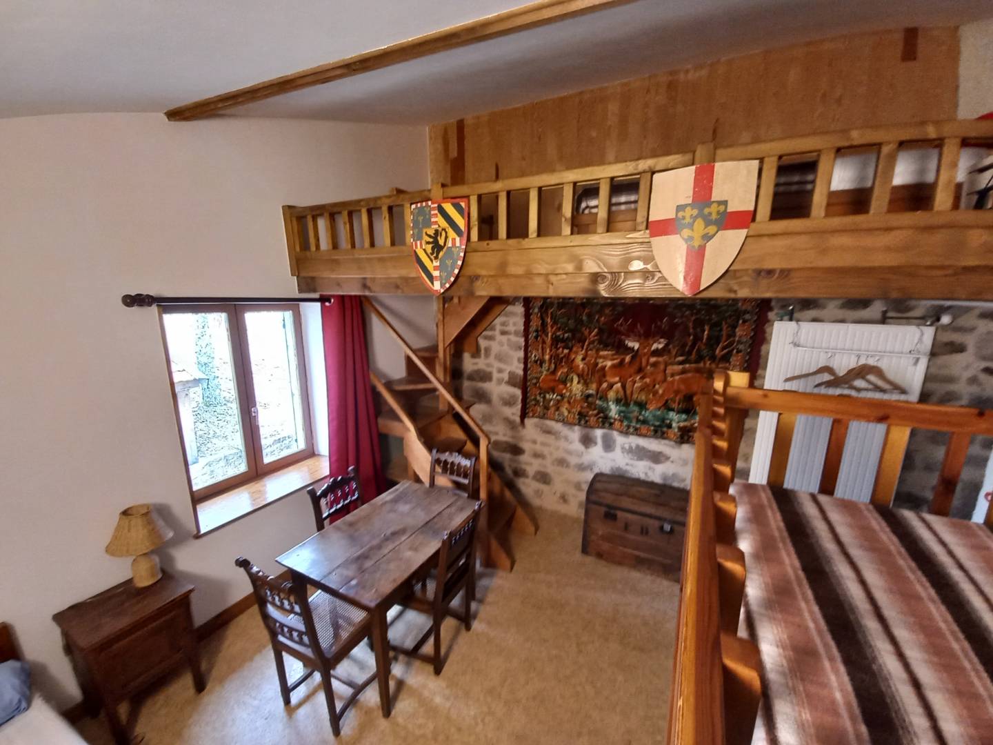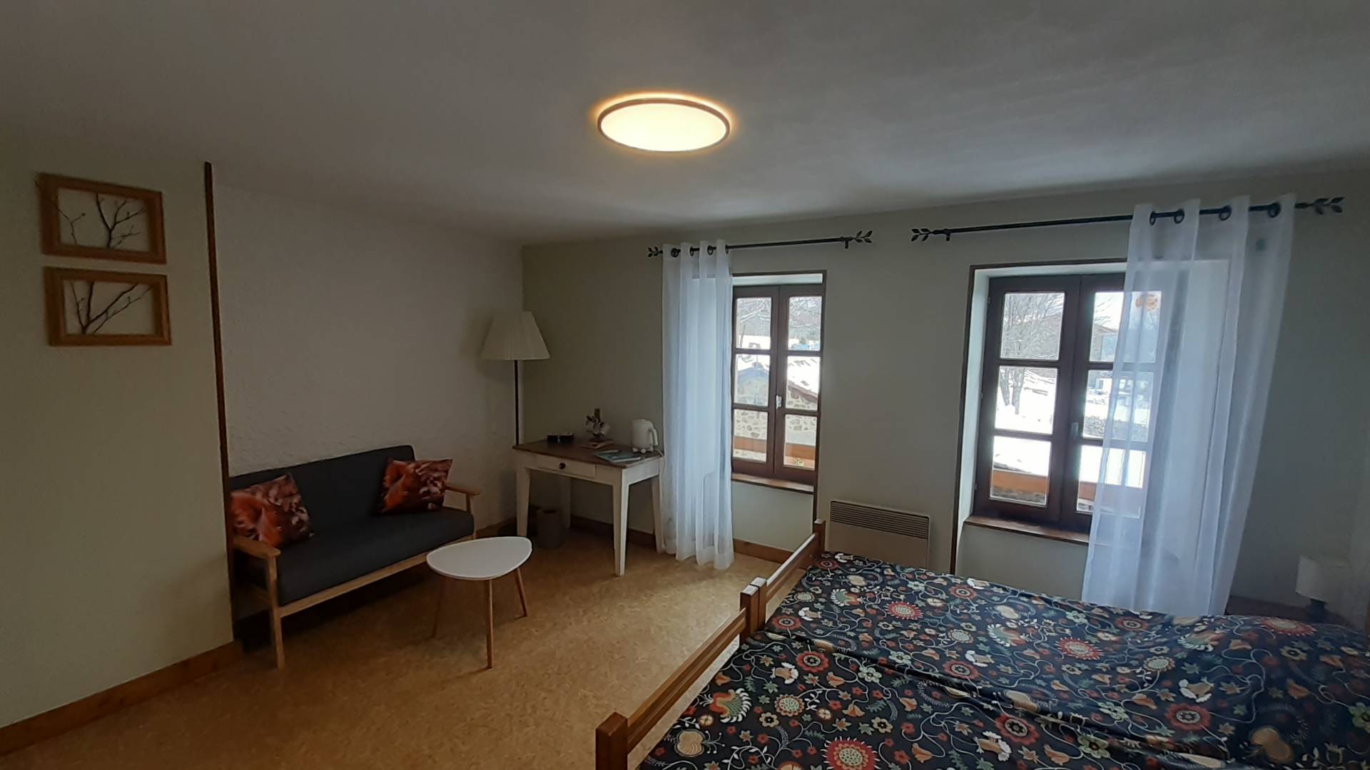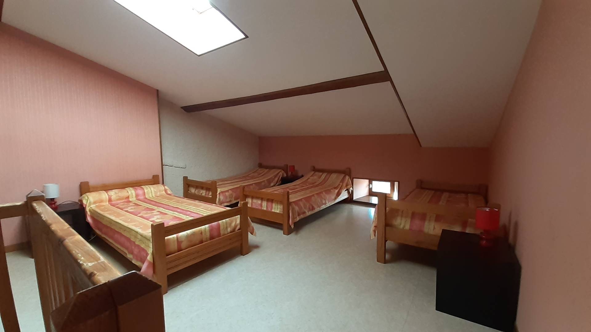 Au premier étage de la ferme se trouvent 4 chambres, des plus simples aux plus luxueuses. Il y a deux chambres plus luxueuses avec un coin salon et une chambre familiale pour quatre personnes. Ces chambres disposent d’une salle de bains et des toilettes privées. Il y a aussi un dortoir pour les randonneurs et cyclistes de passage avec sa propre salle de bain. Les toilettes de cette chambre se trouvent au rez-de-chaussée.