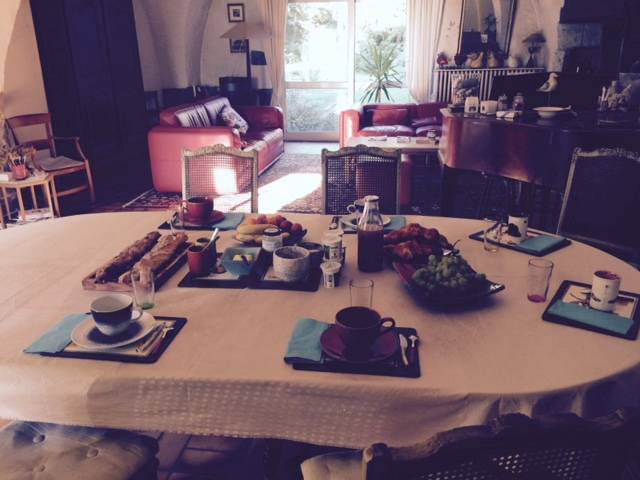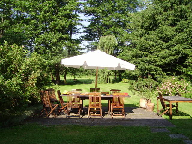 Les chambres sont situées au 2ème étage d’un escalier à vis. Grande salle à manger voûtée, donnant sur le jardin arboré et fleuri.