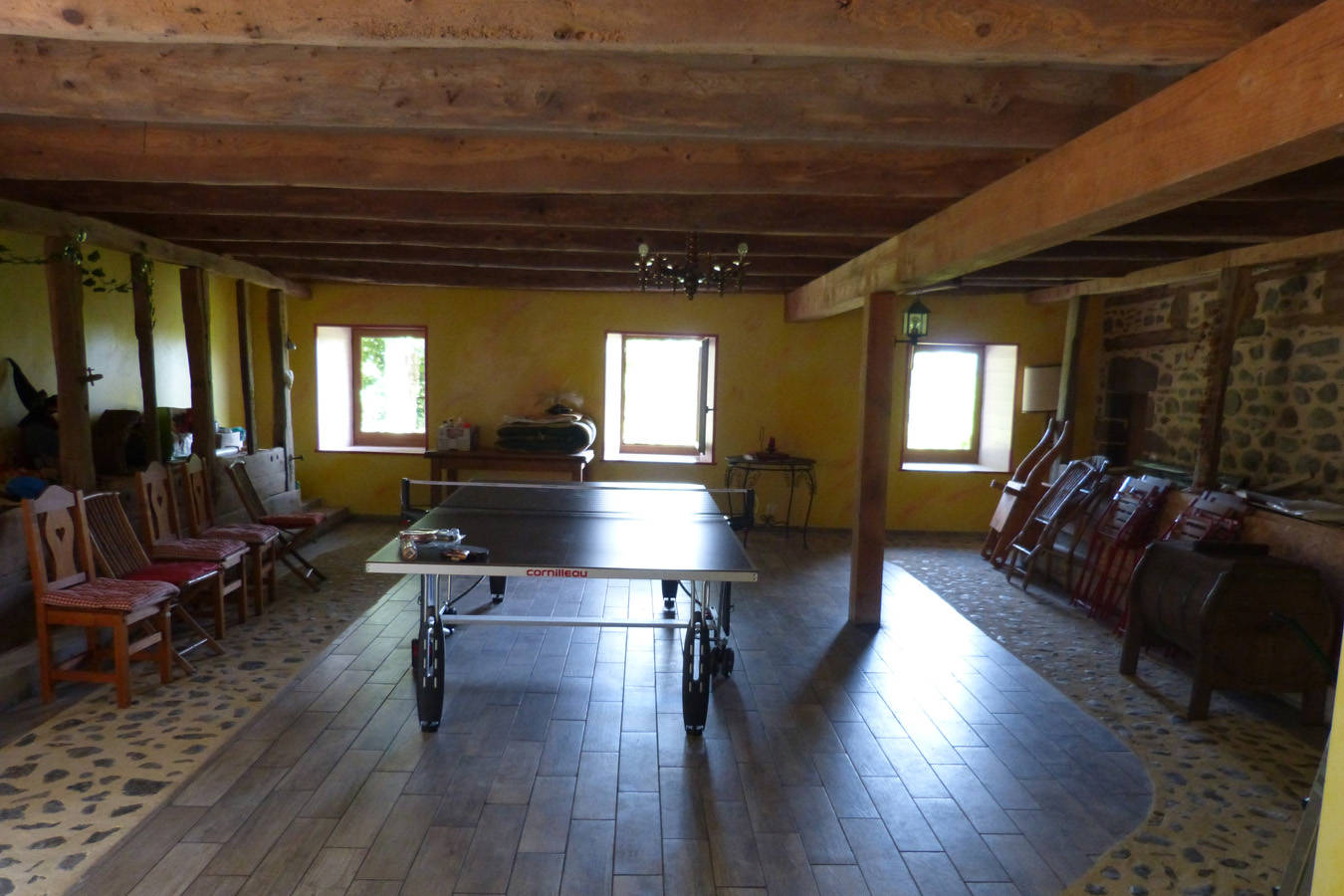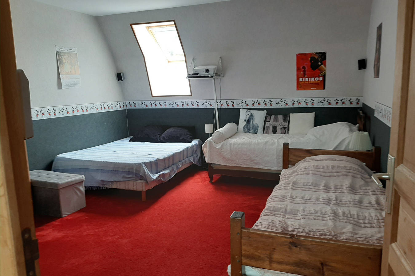 – Une Chambre de 20m2 avec 1 lit de 140, 1 lit de 90 et 1 lit de 80. Cette pièce est également celle du home cinéma.