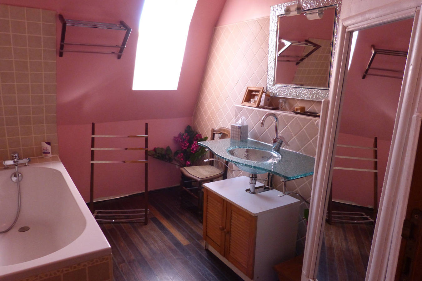 – Une salle de bain avec baignoire