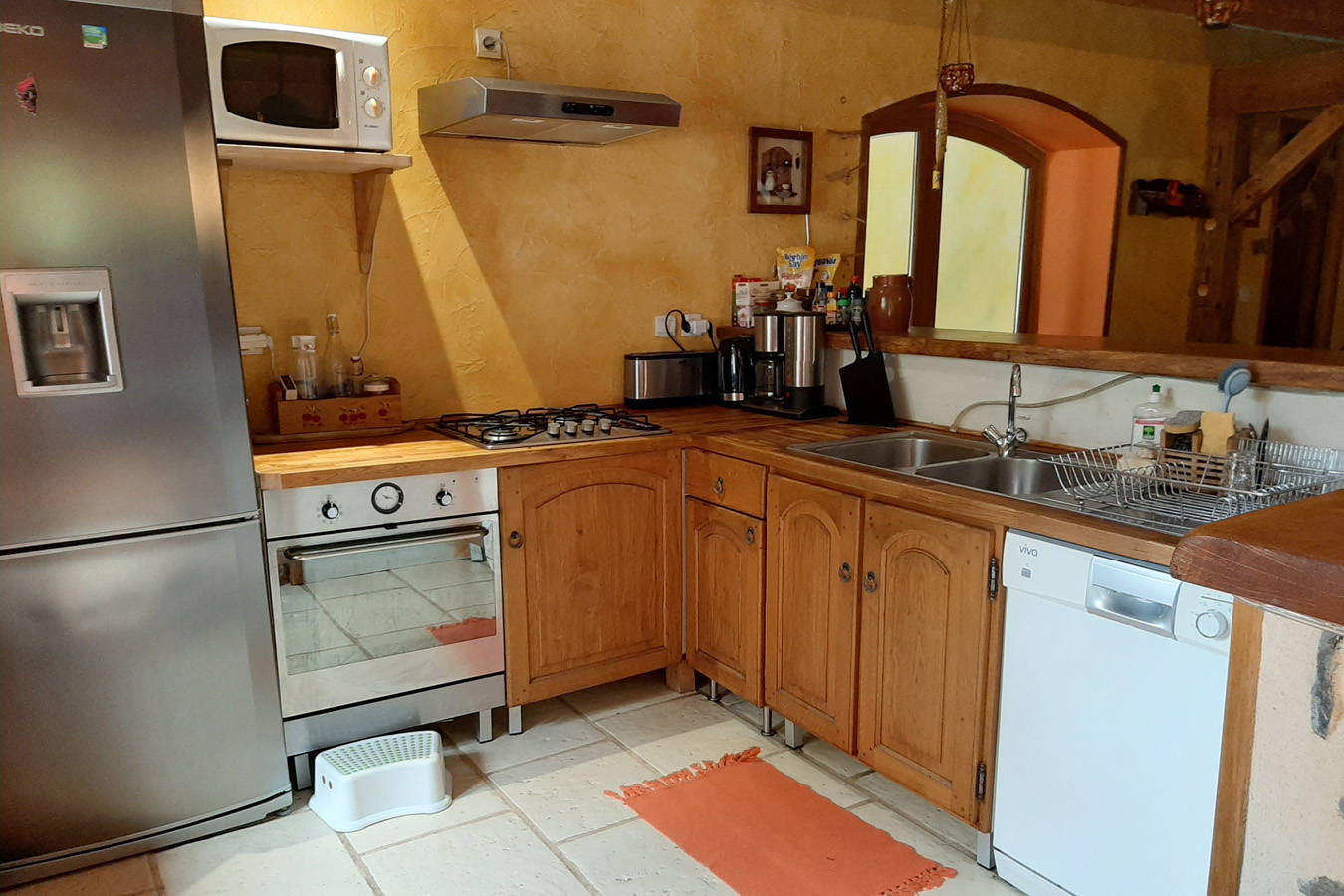 Produits d’entretien fournis (éponges, produit vaisselle, torchons, tablettes lave-vaisselle, 2 rouleaux de papier toilette. La lessive n’est pas fournie et doit être compatible avec les fosses septiques.