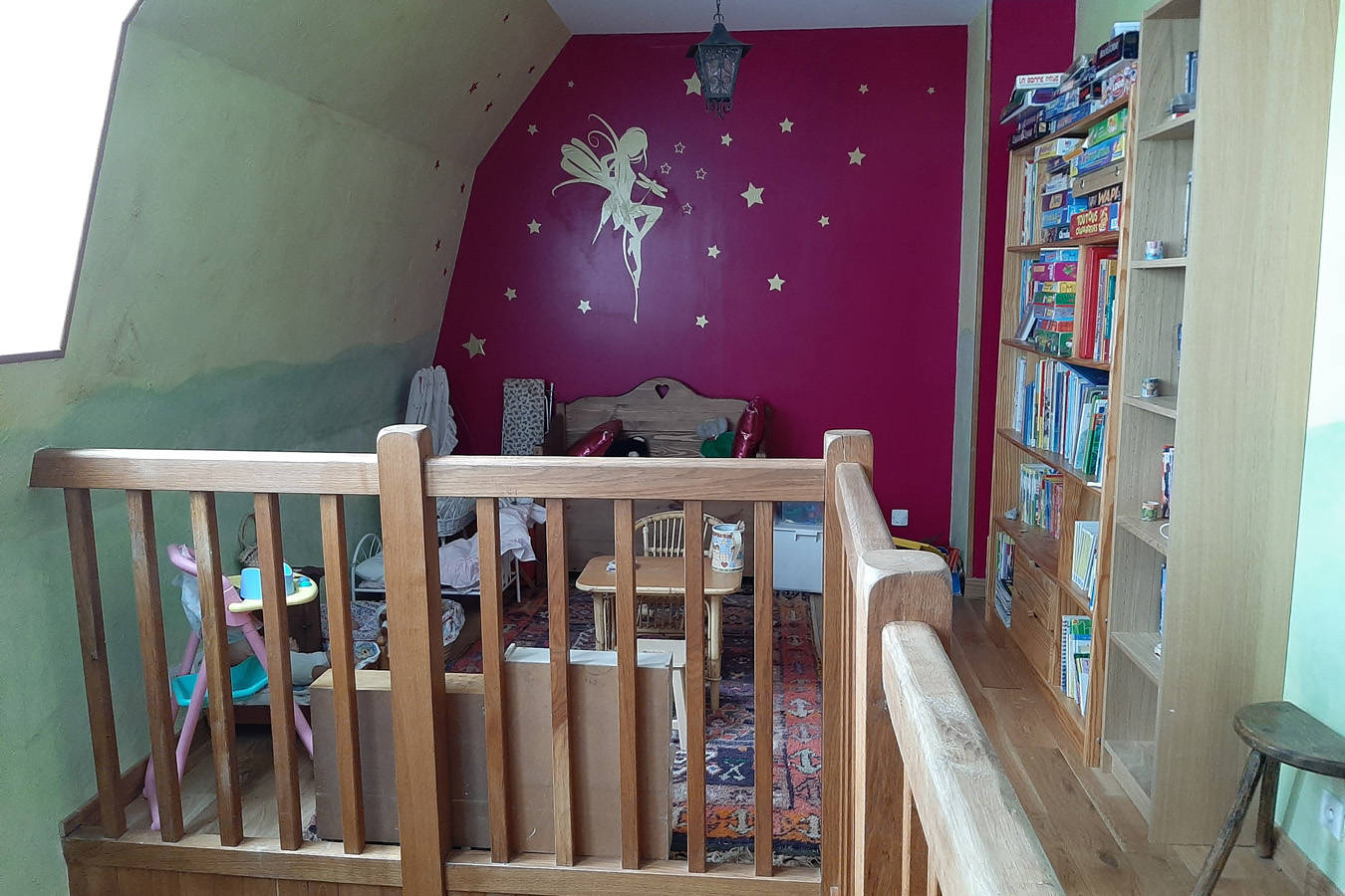 – Une mezzanine dédiée aux enfants : jeux, déguisements, marionnettes, livres…
