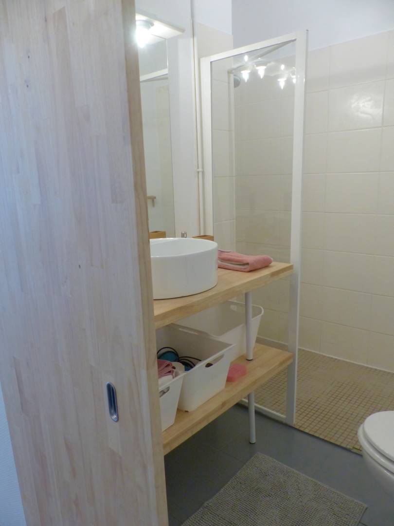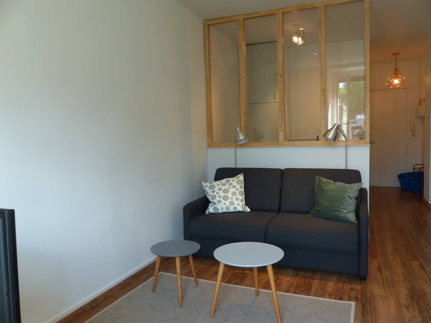 Situé au 3ème et dernier étage avec ascenseur. Notre studio spacieux se trouve au calme. La cuisine équipée est séparée en partie de l’espace séjour et nuit par une verrière qui apporte charme et confort à l’appartement.