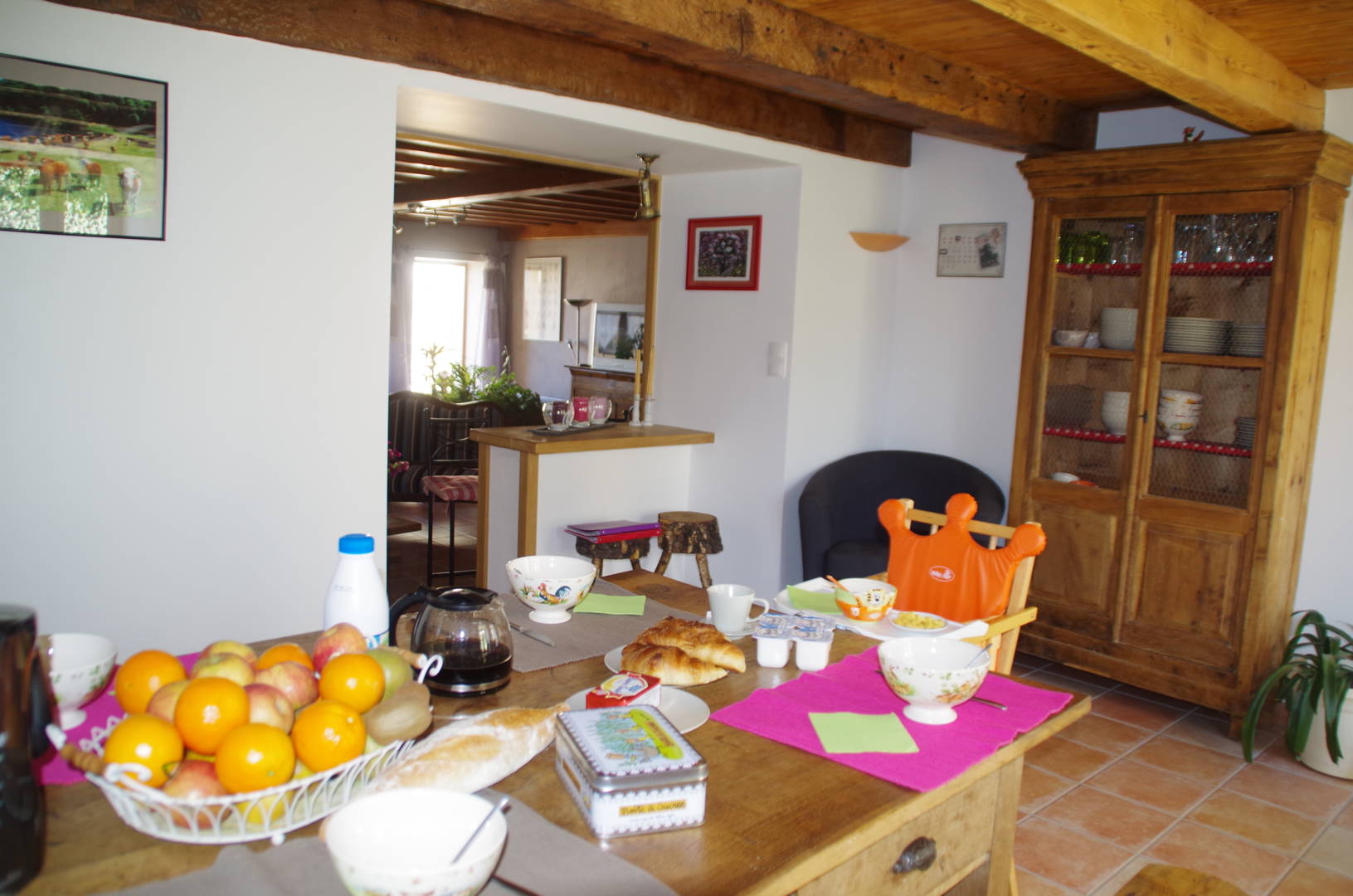 Maison aménagée simplement qui dégage la même chaleur que l’habitat d’autrefois.En été les rayons du soleil vous réchaufferons et en hiver les veillées au coin du poële à bois vous raviront.