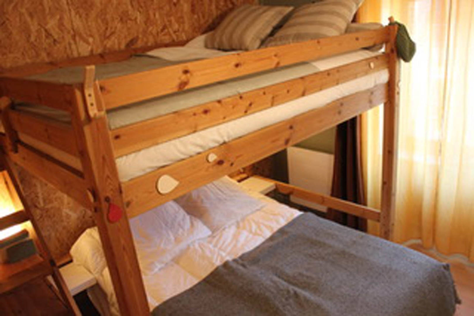– La seconde de 11m2 avec lits superposés de 140x190cm (haut et bas), 2 couettes de 220x240cm, traversins et 8 oreillers 65x65cm, rangement et penderie.