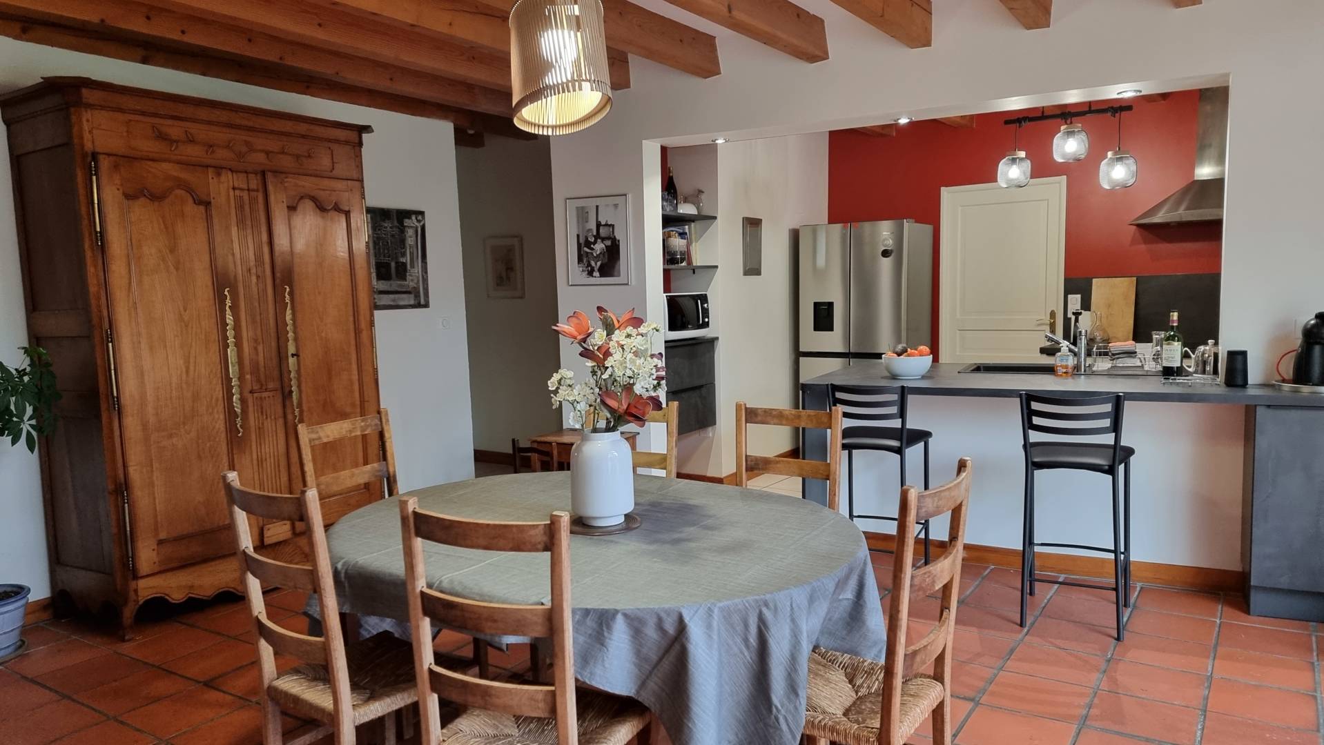 Avec sa buanderie et sa belle cuisine ouverte sur la salle à manger, la maison est très bien équipée (lave-linge et sèche-linge, four traditionnel micro-ondes, lave-vaisselle, réfrigérateur américain, fer et table à repasser).