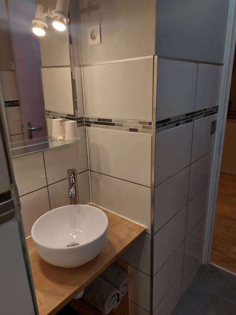 Petit appartement (1 chambre) situé au 1er étage refais à neuf. Détendez-vous dans ce logement situé au 1er étage, calme et élégant refait à neuf et entièrement équipé au milieu des volcans d’Auvergne. Idéal pour une ou deux personnes.