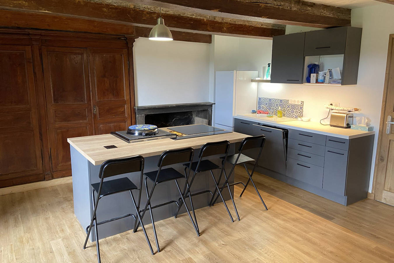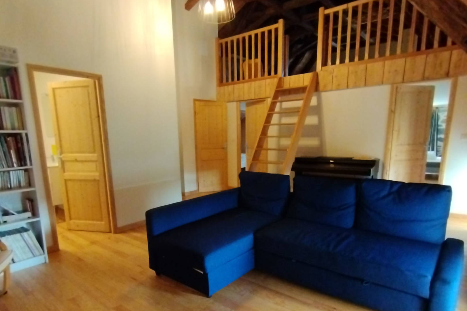Maison de 160 m² sur 2 étages + mezzanine comportant une vaste pièce à vivre avec cuisine ouverte et coin feu. Une salle d’eau (douche et WC) complète le RDC. Des jeux de société sont à votre disposition. A l’étage, un espace détente, 2 chambres, une salle de bain et(…)