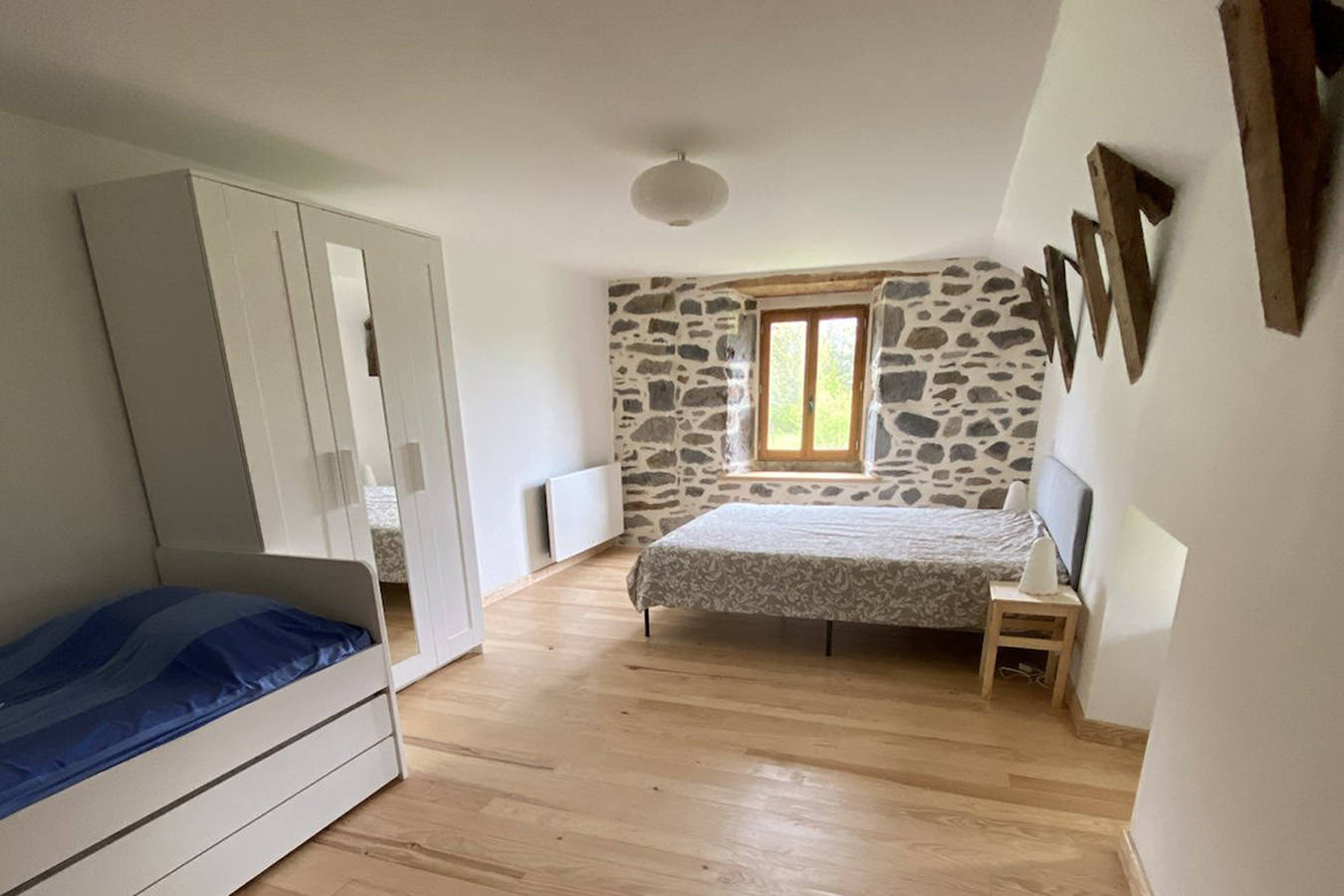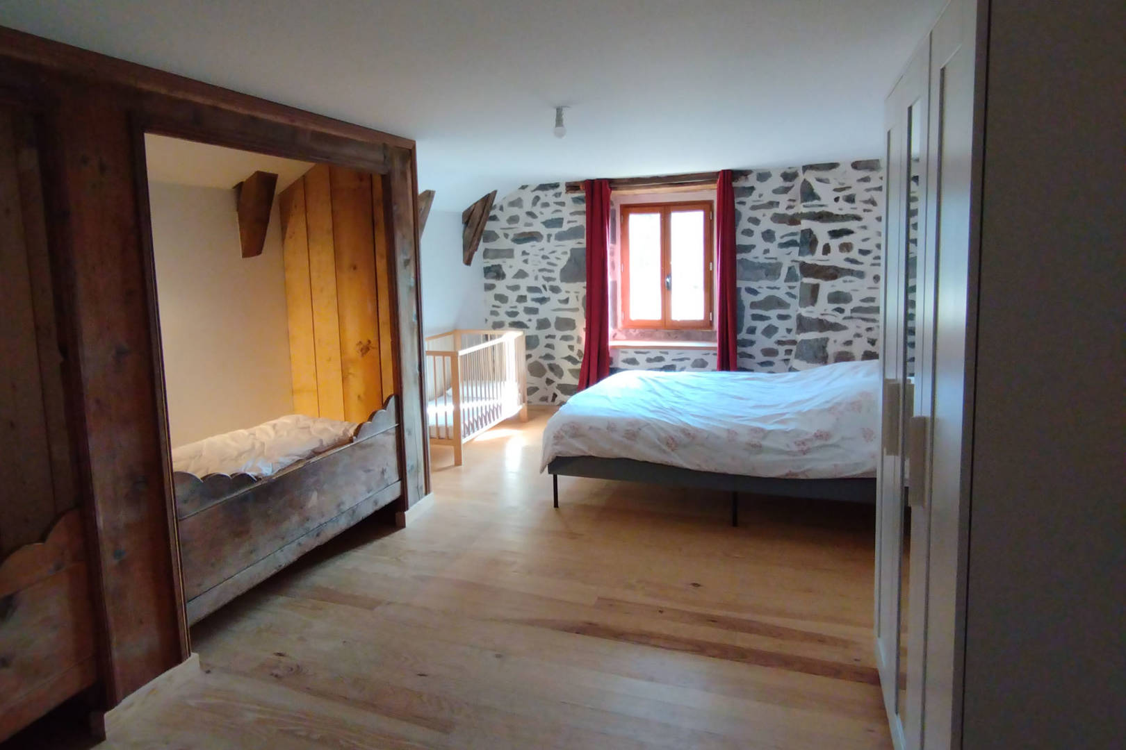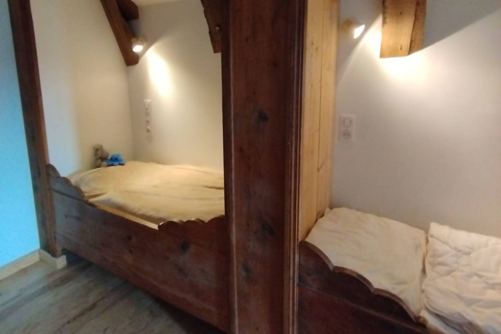 Maison de 160 m² sur 2 étages + mezzanine comportant une vaste pièce à vivre avec cuisine ouverte et coin feu. Une salle d’eau (douche et WC) complète le RDC. Des jeux de société sont à votre disposition. A l’étage, un espace détente, 2 chambres, une salle de bain et un WC séparé. L’espace détente comprend un canapé, une télévision et des livres. Chambre 1 : 1 lit 160*200, 2 lits wagons typiques (165*70) adaptés pour enfant, ainsi qu’un lit à barreaux. Chambre 2 : 1 lit 160*200, 2 lits 90*200. Mezzanine : un lit 160*190. Table à langer et chaise bébé sur place. Nombreuses randonnées à pied ou à vélo vous attendent !