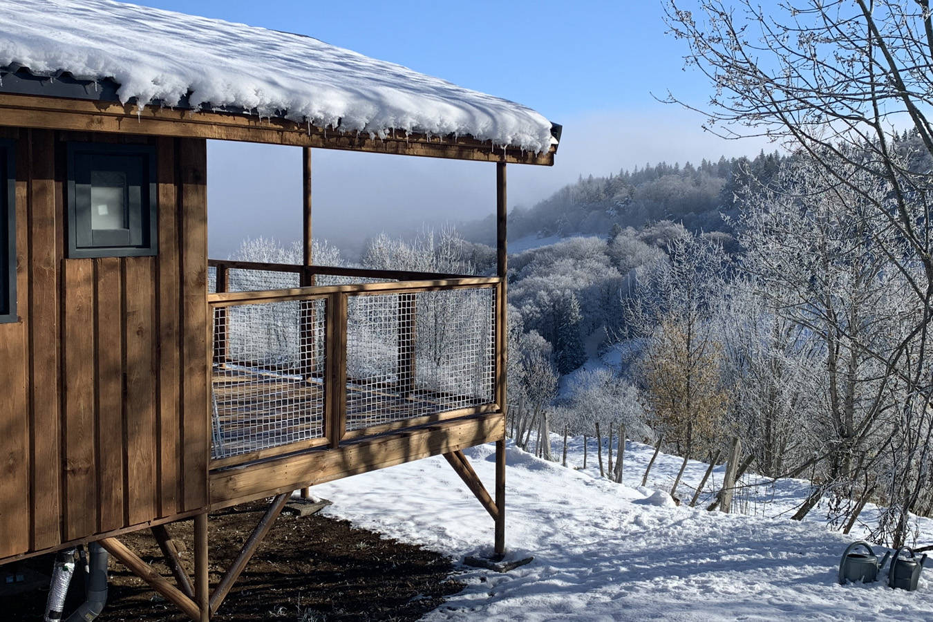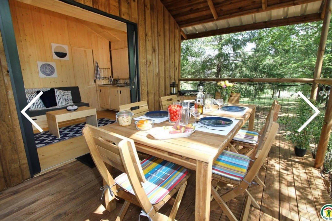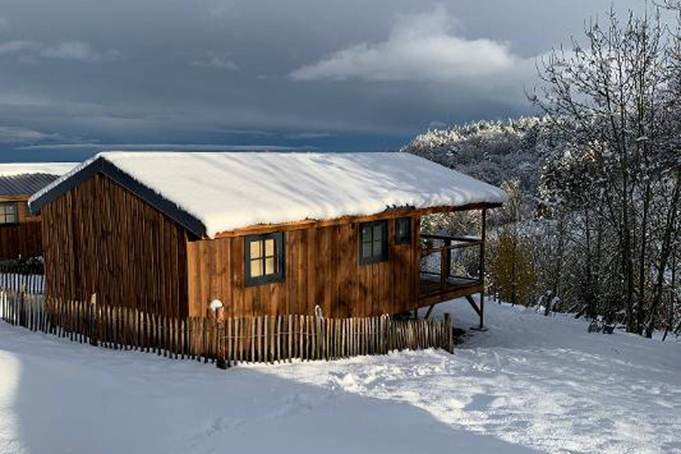 Accueil familial ou entres amis, nos deux éco-chalets de 27 m2 vous proposent 2 chambres séparés, 1 cuisine toute équipée, 1 salle d’eau et 1 WC séparé, 1 grande terrasse couverte de 13m2 avec vue sur la forêt.