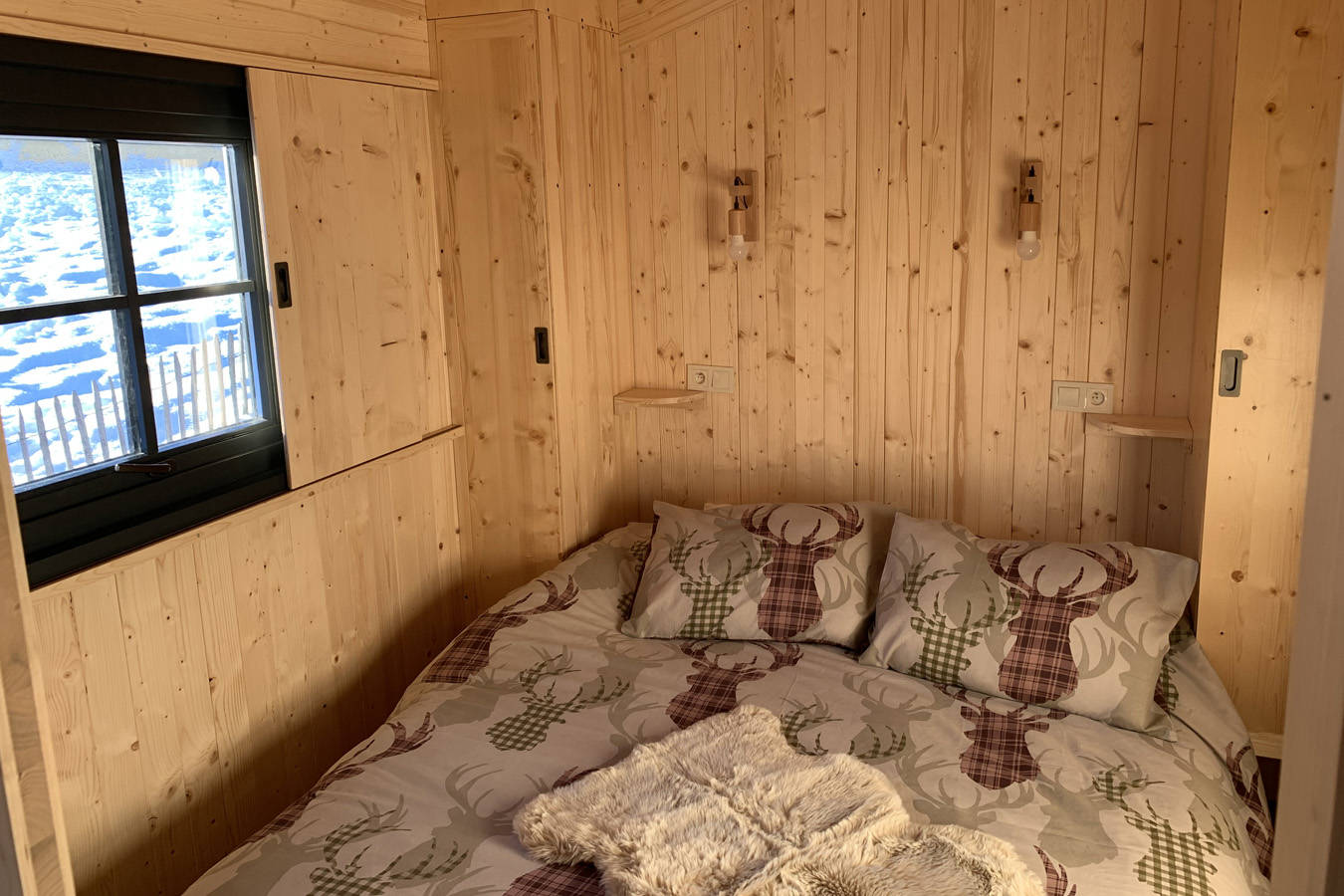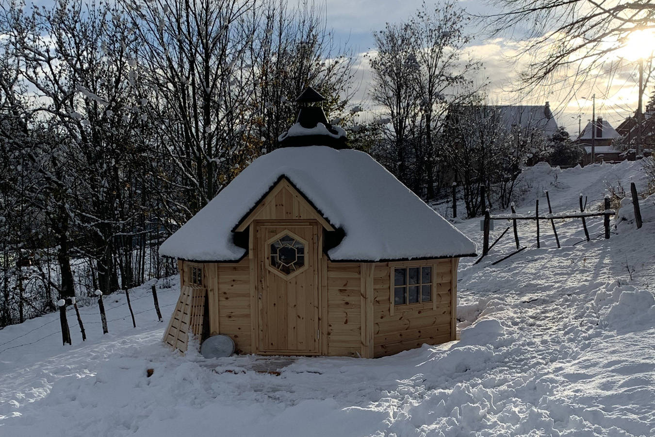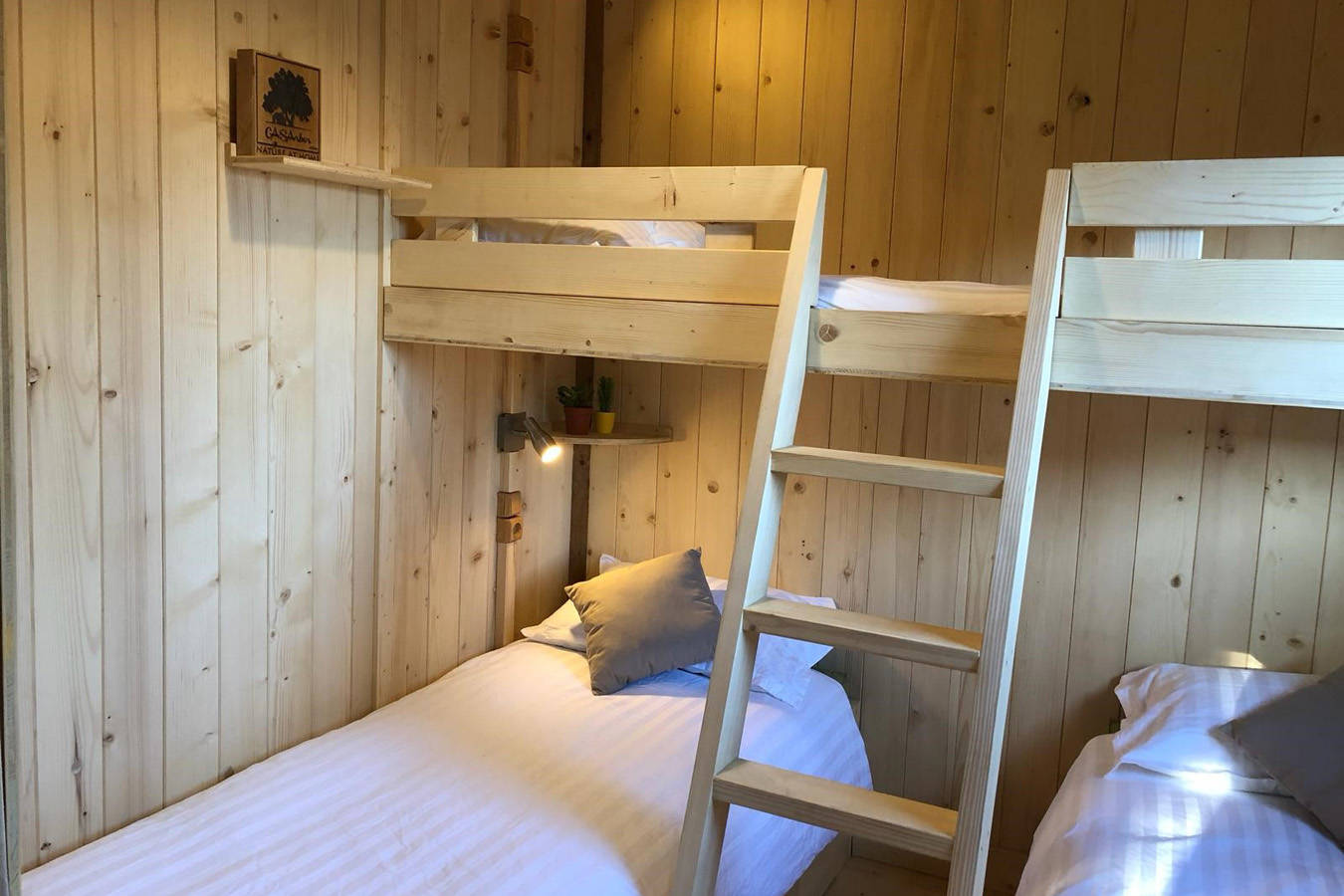 Accueil familial ou entres amis, nos deux éco-chalets de 27 m2 vous proposent 2 chambres séparés, 1 cuisine toute équipée, 1 salle d’eau et 1 WC séparé, 1 grande terrasse couverte de 13m2 avec vue sur la forêt.