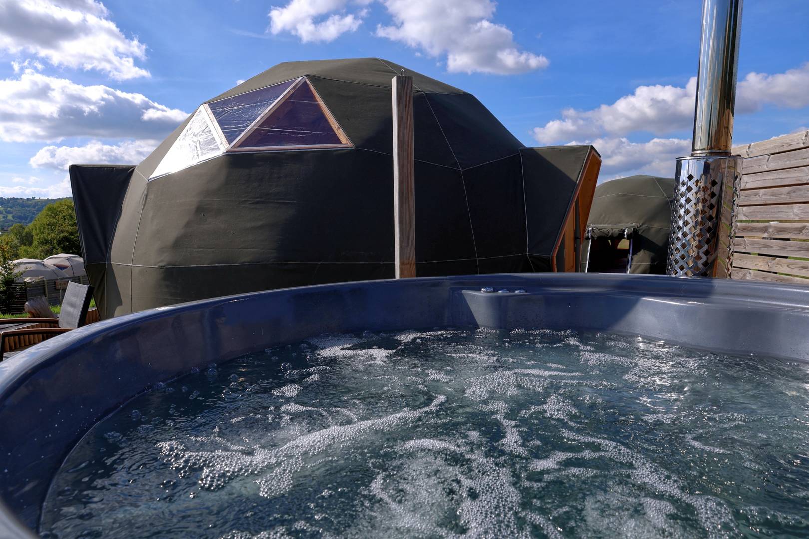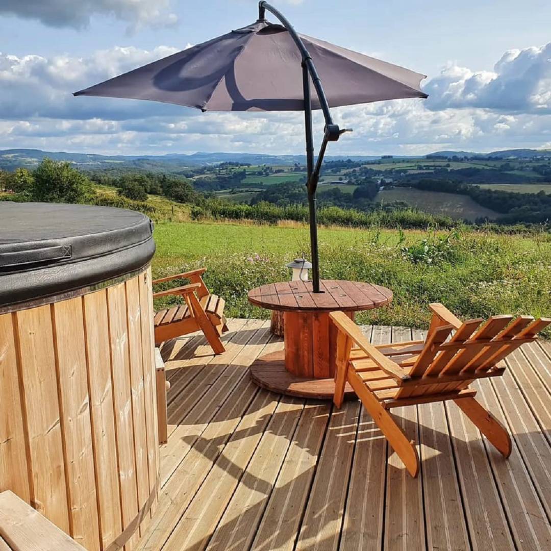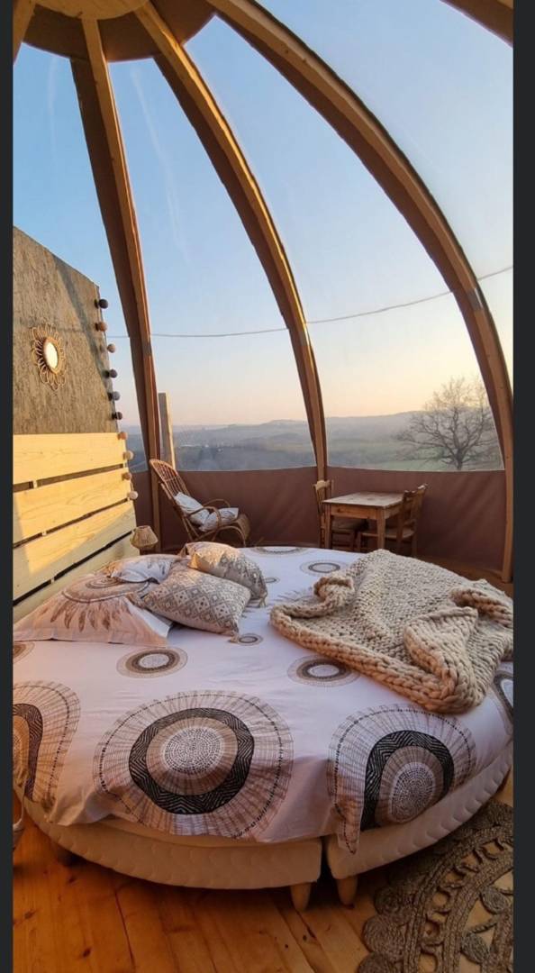– La Suite Étoilée est un wigwam de 28 m², équipé d’un lit rond avec une salle d’eau, WC, spa privatif avec une ambiance bohème. Attenant un dôdome pour les enfants. Spa sur la terrasse