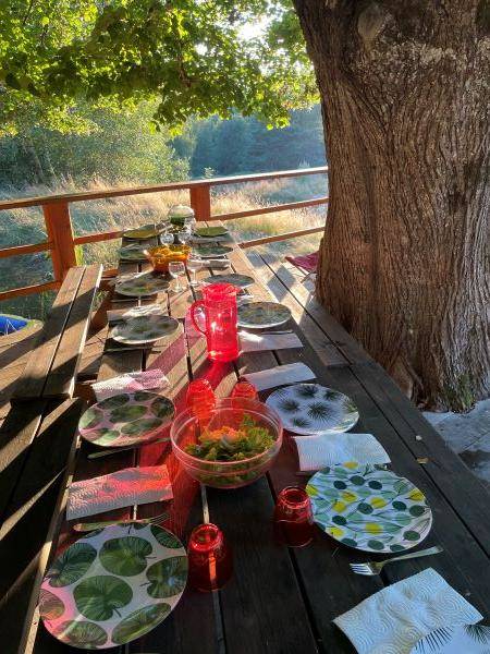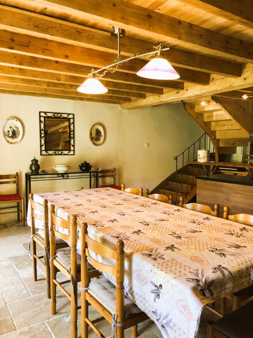La salle à manger peut accueillir confortablement 18 convives (vaisselle adaptée), même nombre pour le salon qui dispose d’un grande bibliothèque remplie de livres et de divers jeux de société pour enfants et adultes (pas de télévision, calme préservé).