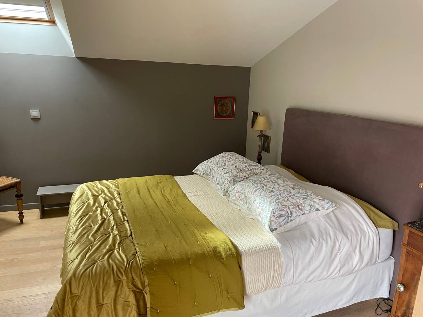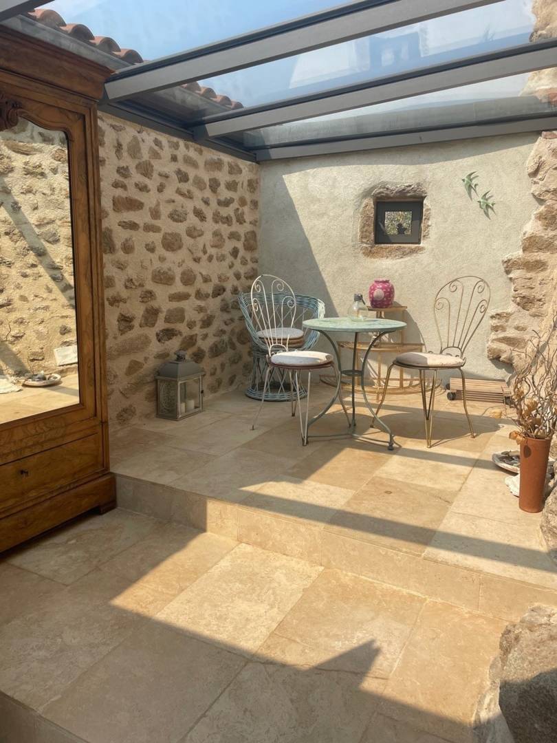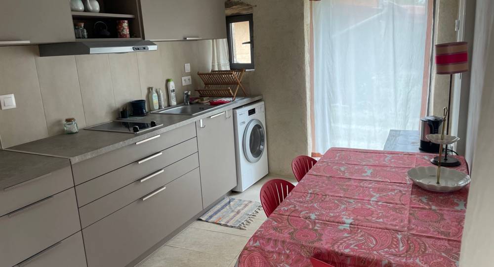 La rénovation de la maisonnette a été effectuée à l’aide de produits naturels et écologiques. La restauration des murs intérieurs/extérieurs a été réalisée à la chaux, isolation en chanvre et laine de bois et parquet huilé. Les ouvertures sont d’origine. Le gîte a un très bel escalier en bois qui s’adapte au rocher.