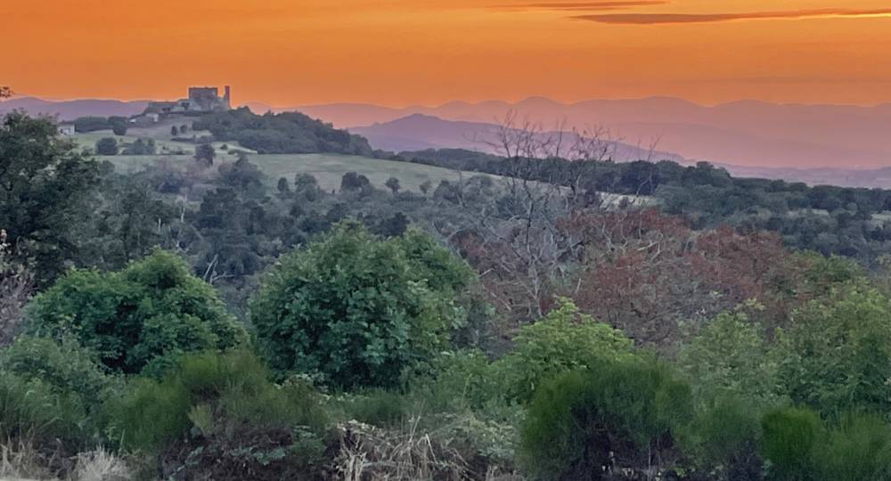 Le gîte Maisonnette pour 2 personnes vous accueille avec vue sur la chaîne des Puys et le Château de Montmorin.