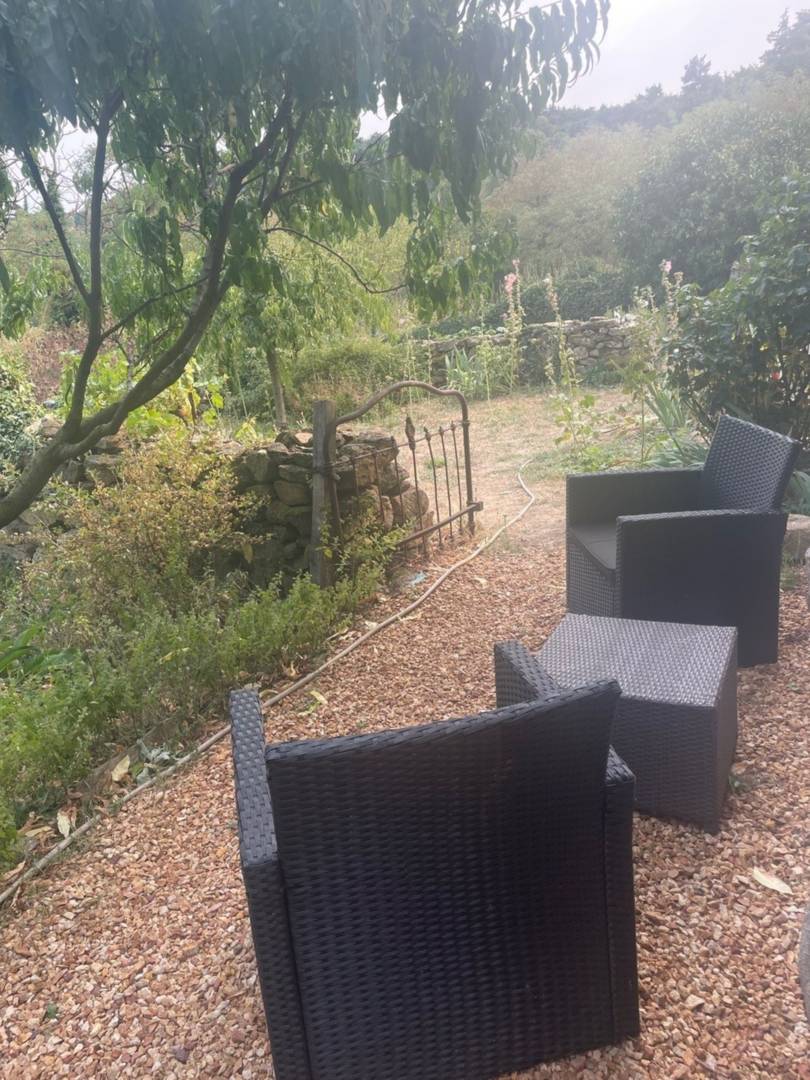 La terrasse est exposée au sud, disposant d’une voile d’ombrage et de mobilier de jardin.