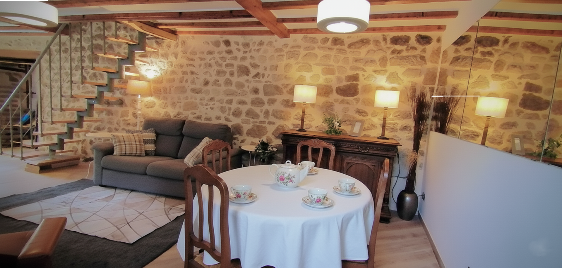 Chez Amélie est une ancienne maison paysanne en pierre, aujourd’hui rénovée avec soin pour accueillir familles et amis dans un cadre chaleureux. Les matériaux d’origine, comme les murs en pierre et les plafonds en bois, se mêlent à un confort moderne pour créer une atmosphère simple, accueillante et authentique.