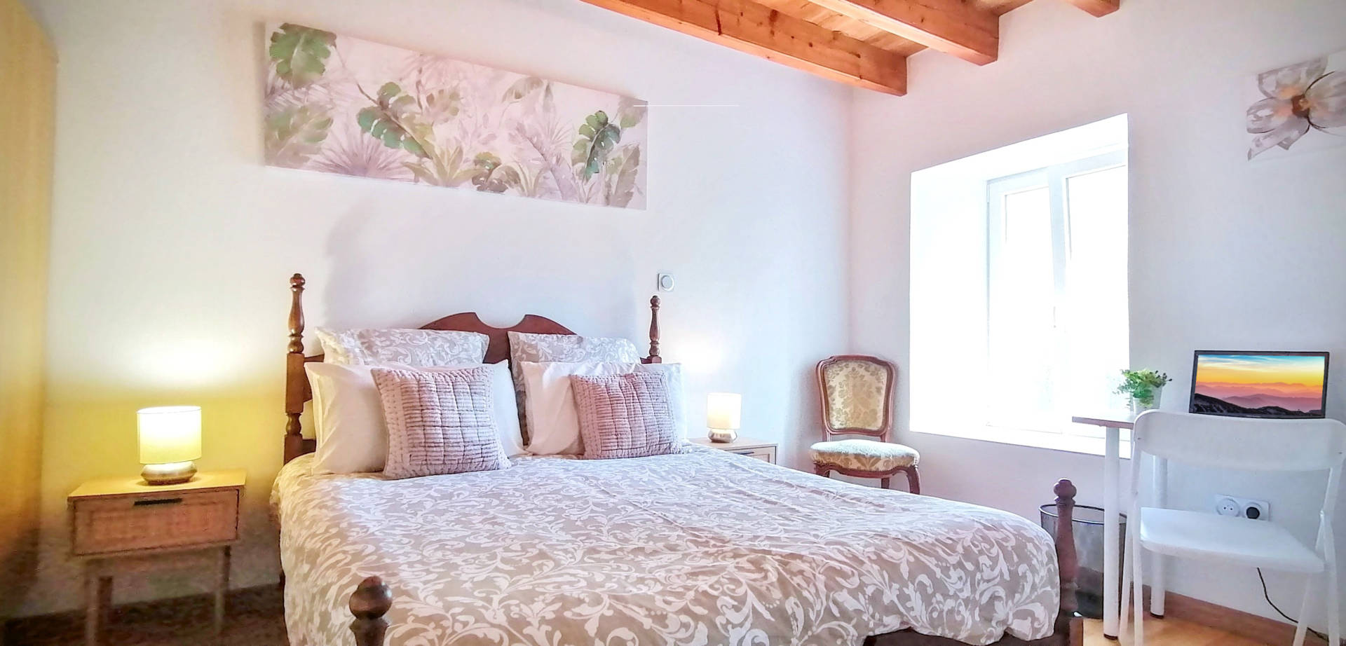 Une chambre double avec un lit de 140 cm et une fenêtre orientée à l’est pour profiter de la lumière du matin,